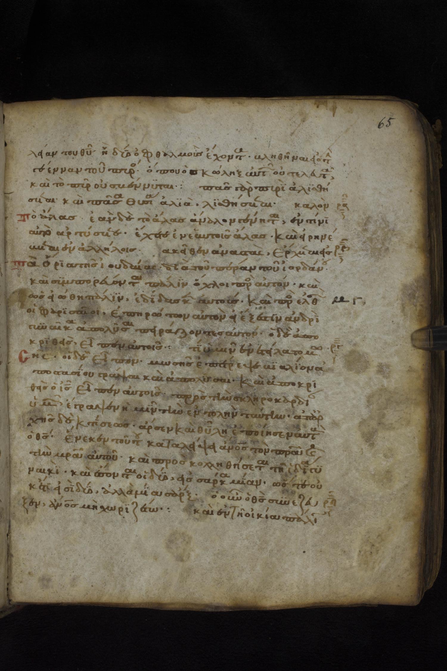 Twelfth century minuscule of the Gospels on parchment; 181 leaves, 1 column, 23-24 lines per column. Images were taken at the National Library of Greece in Athens.