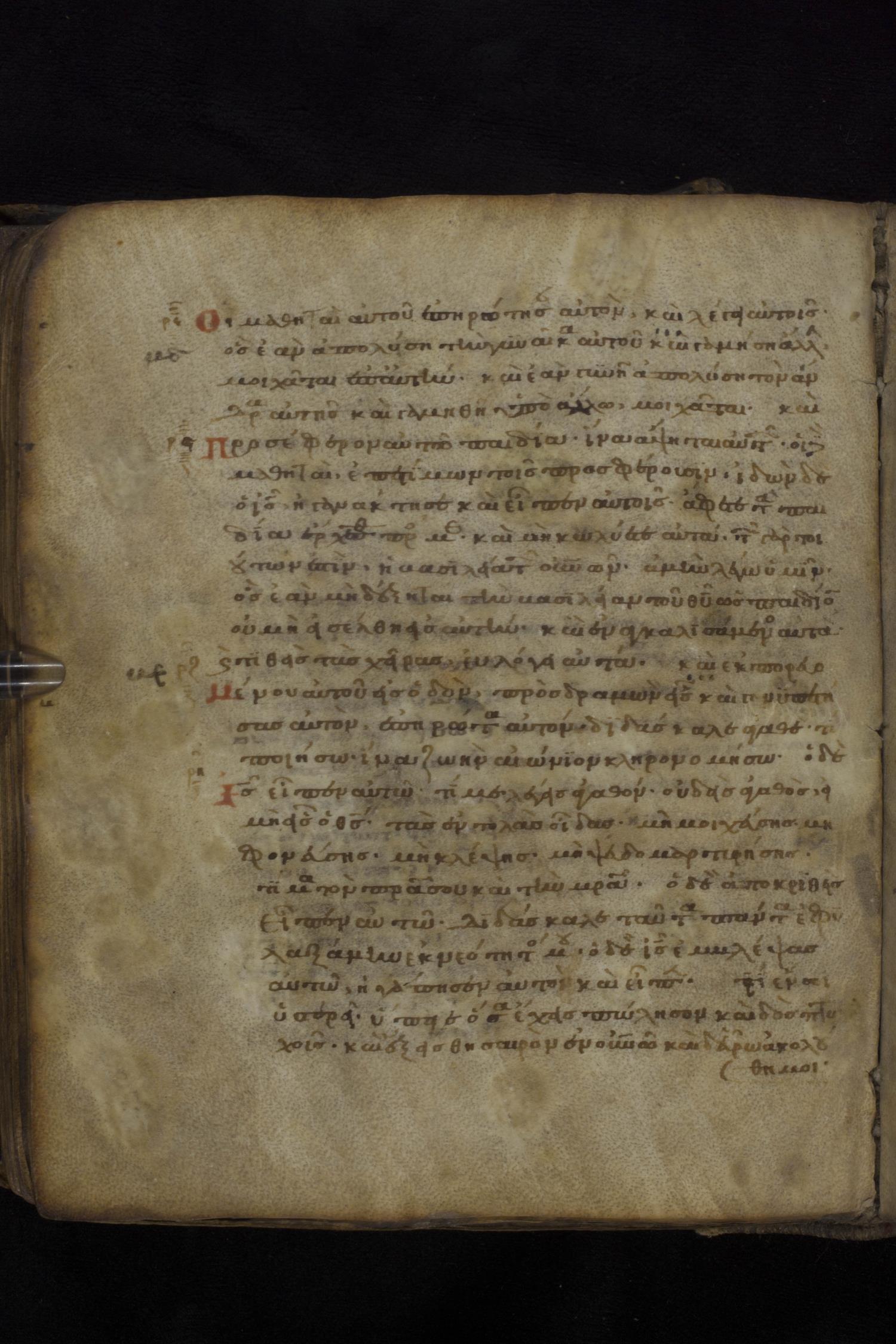 Twelfth century minuscule of the Gospels on parchment; 181 leaves, 1 column, 23-24 lines per column. Images were taken at the National Library of Greece in Athens.