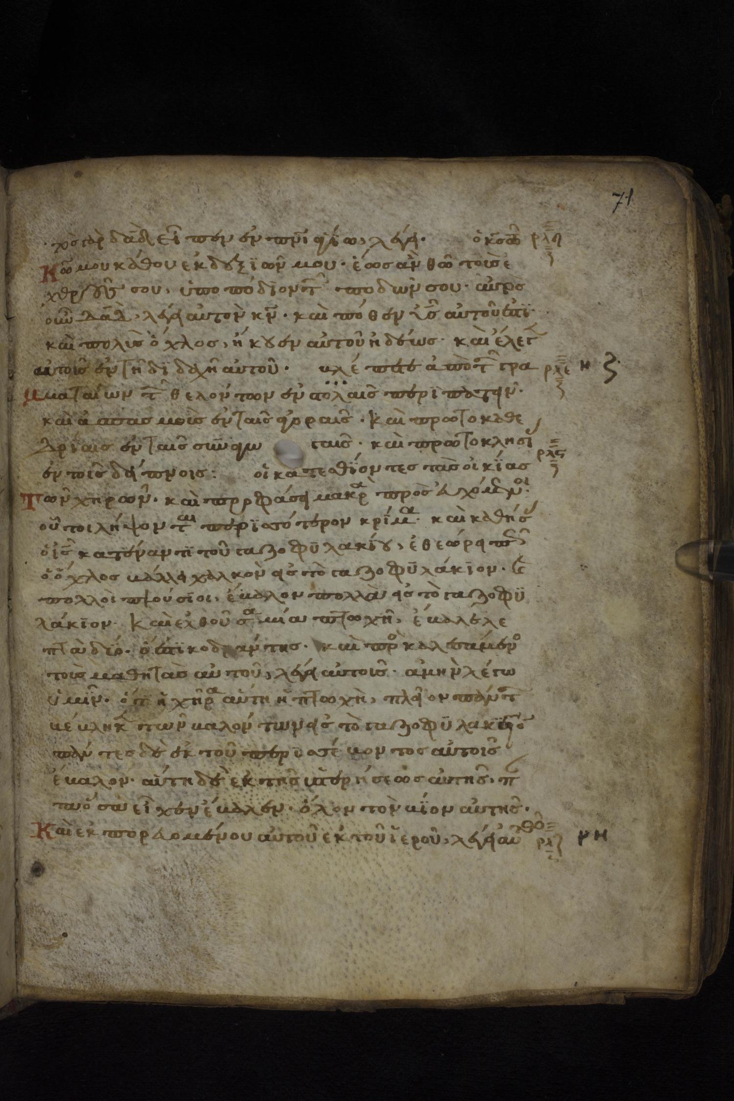 Twelfth century minuscule of the Gospels on parchment; 181 leaves, 1 column, 23-24 lines per column. Images were taken at the National Library of Greece in Athens.