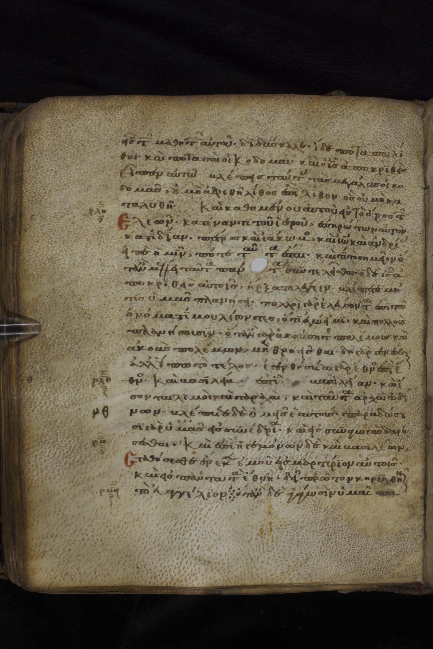 Twelfth century minuscule of the Gospels on parchment; 181 leaves, 1 column, 23-24 lines per column. Images were taken at the National Library of Greece in Athens.
