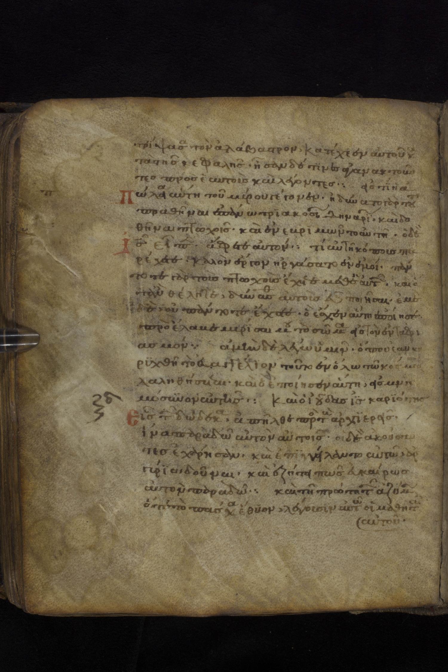 Twelfth century minuscule of the Gospels on parchment; 181 leaves, 1 column, 23-24 lines per column. Images were taken at the National Library of Greece in Athens.