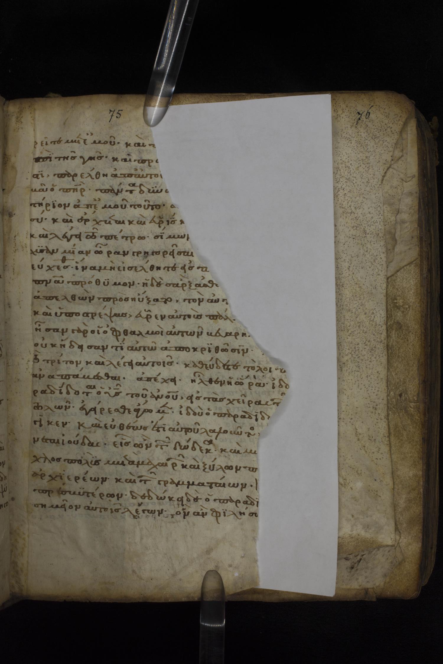 Twelfth century minuscule of the Gospels on parchment; 181 leaves, 1 column, 23-24 lines per column. Images were taken at the National Library of Greece in Athens.