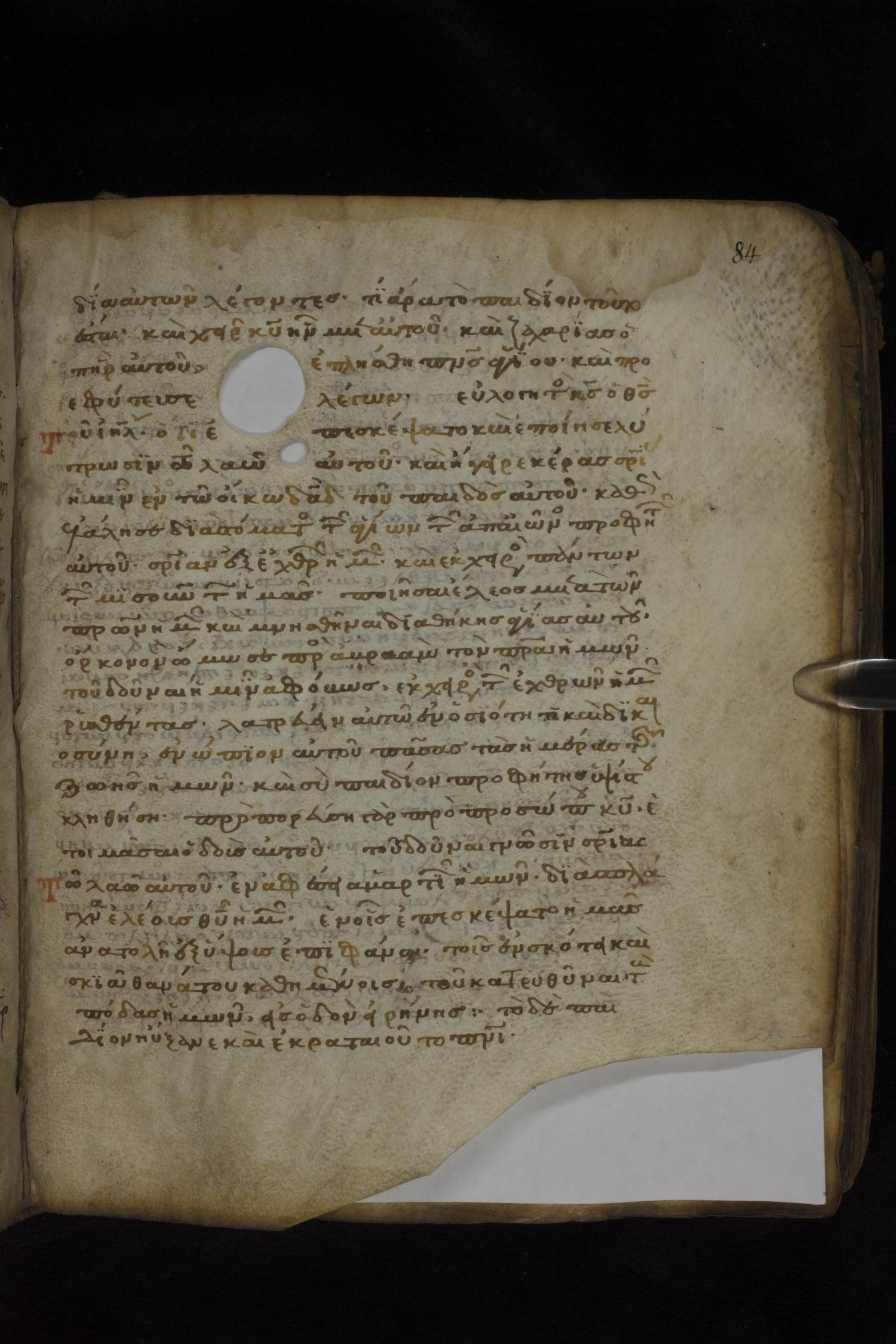 Twelfth century minuscule of the Gospels on parchment; 181 leaves, 1 column, 23-24 lines per column. Images were taken at the National Library of Greece in Athens.