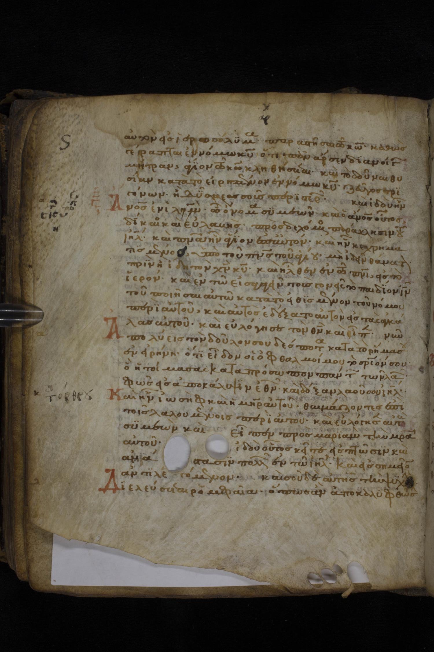 Twelfth century minuscule of the Gospels on parchment; 181 leaves, 1 column, 23-24 lines per column. Images were taken at the National Library of Greece in Athens.
