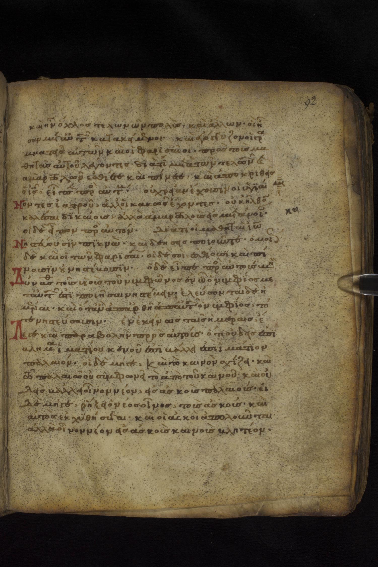 Twelfth century minuscule of the Gospels on parchment; 181 leaves, 1 column, 23-24 lines per column. Images were taken at the National Library of Greece in Athens.
