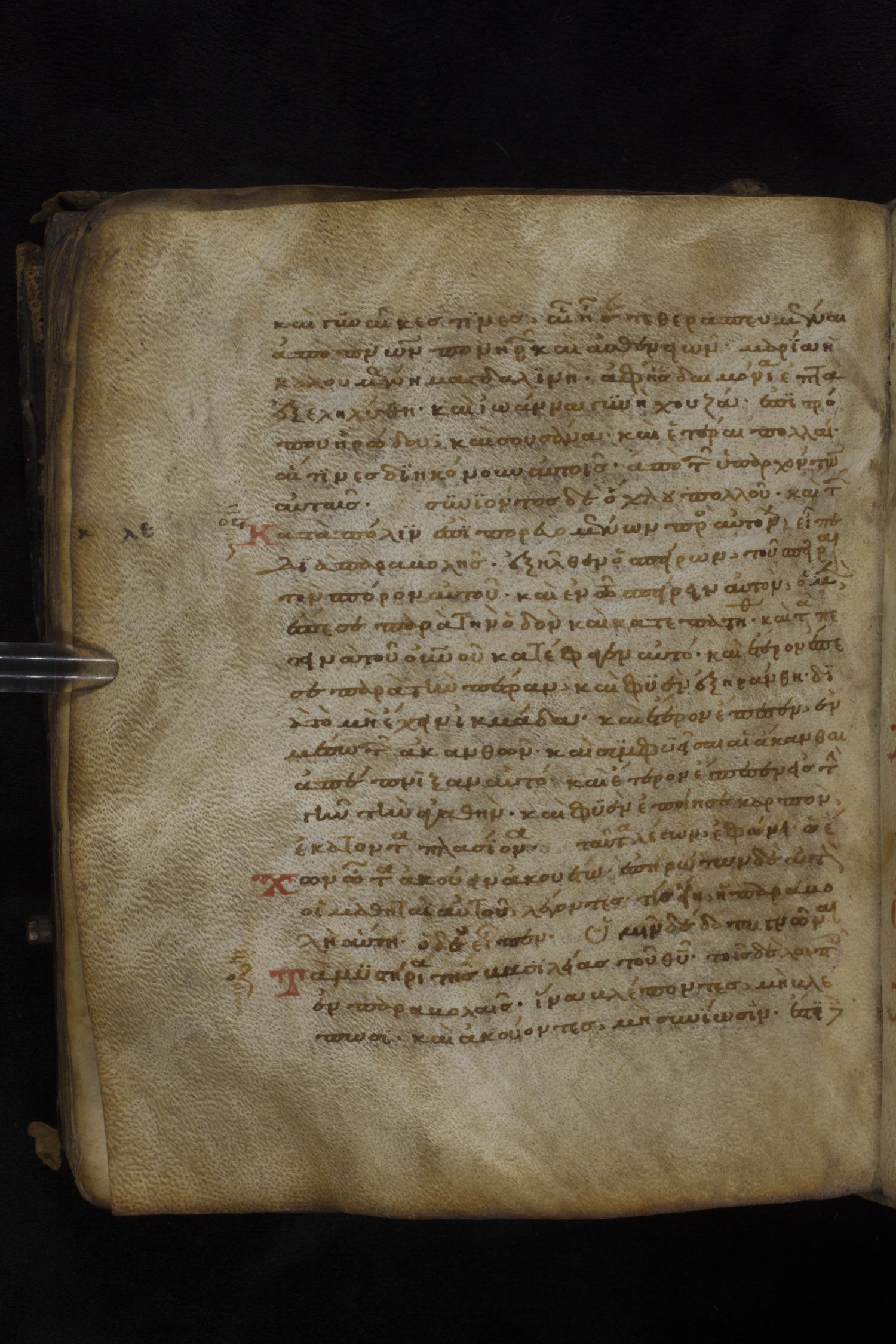 Twelfth century minuscule of the Gospels on parchment; 181 leaves, 1 column, 23-24 lines per column. Images were taken at the National Library of Greece in Athens.