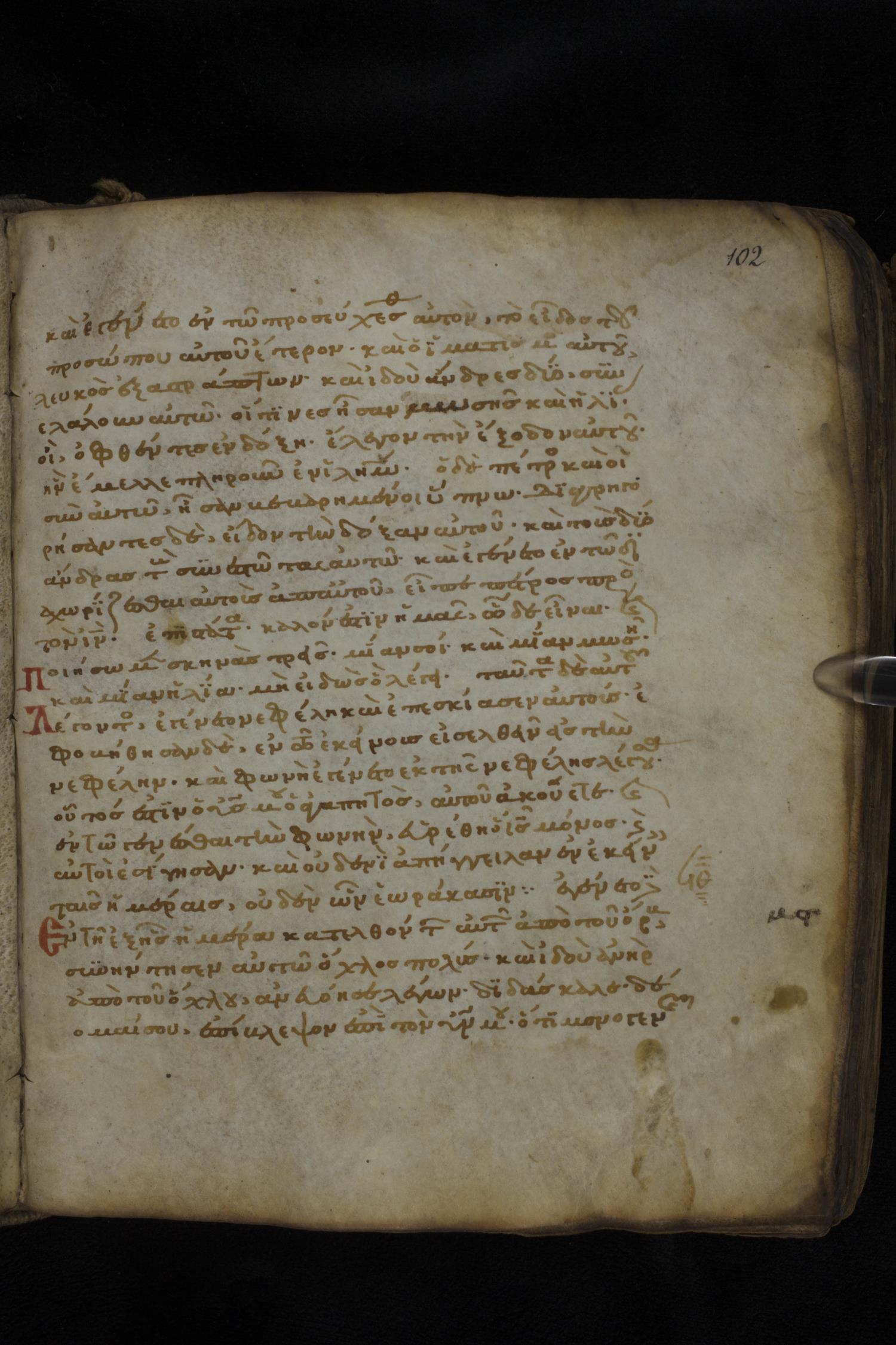 Twelfth century minuscule of the Gospels on parchment; 181 leaves, 1 column, 23-24 lines per column. Images were taken at the National Library of Greece in Athens.