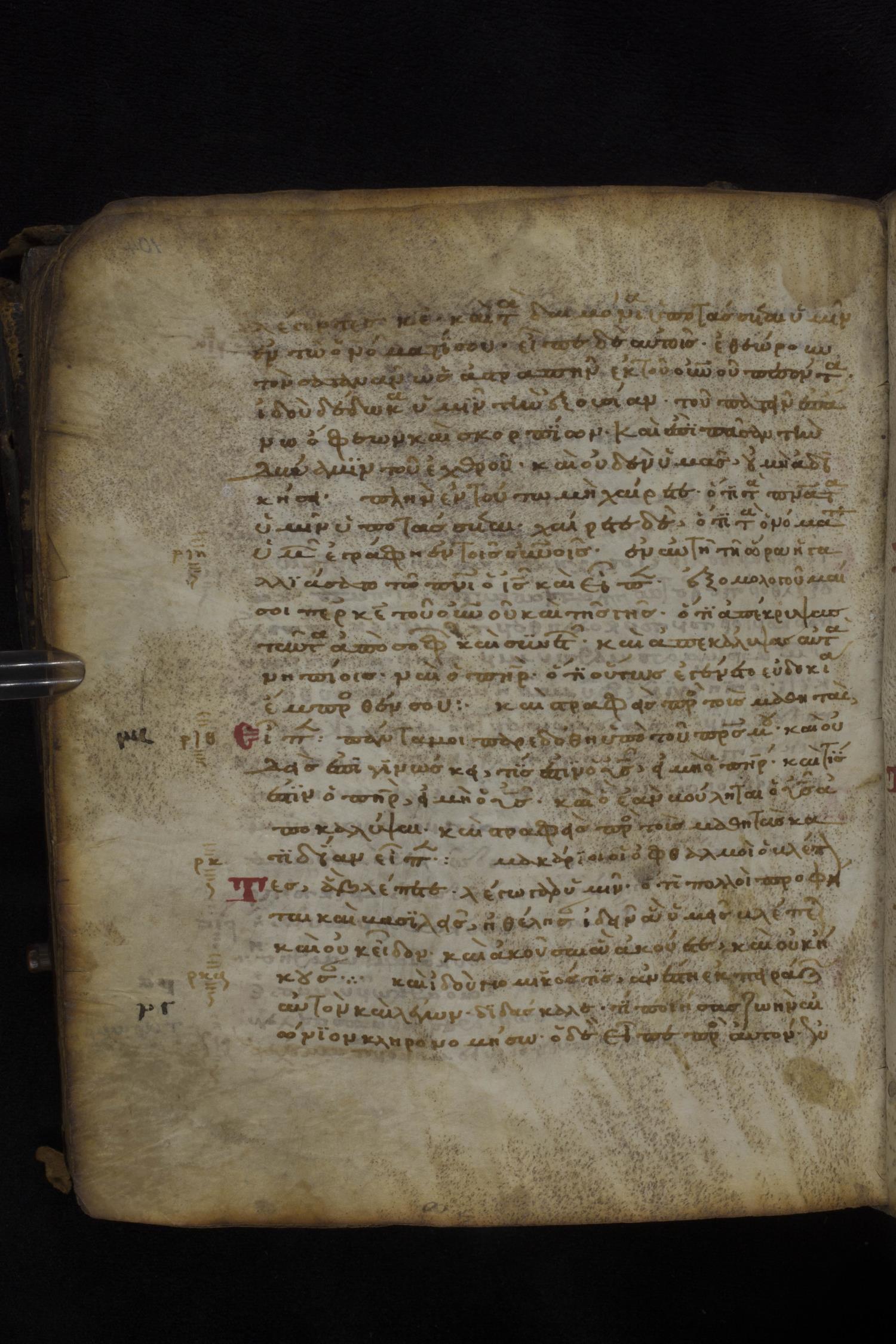 Twelfth century minuscule of the Gospels on parchment; 181 leaves, 1 column, 23-24 lines per column. Images were taken at the National Library of Greece in Athens.