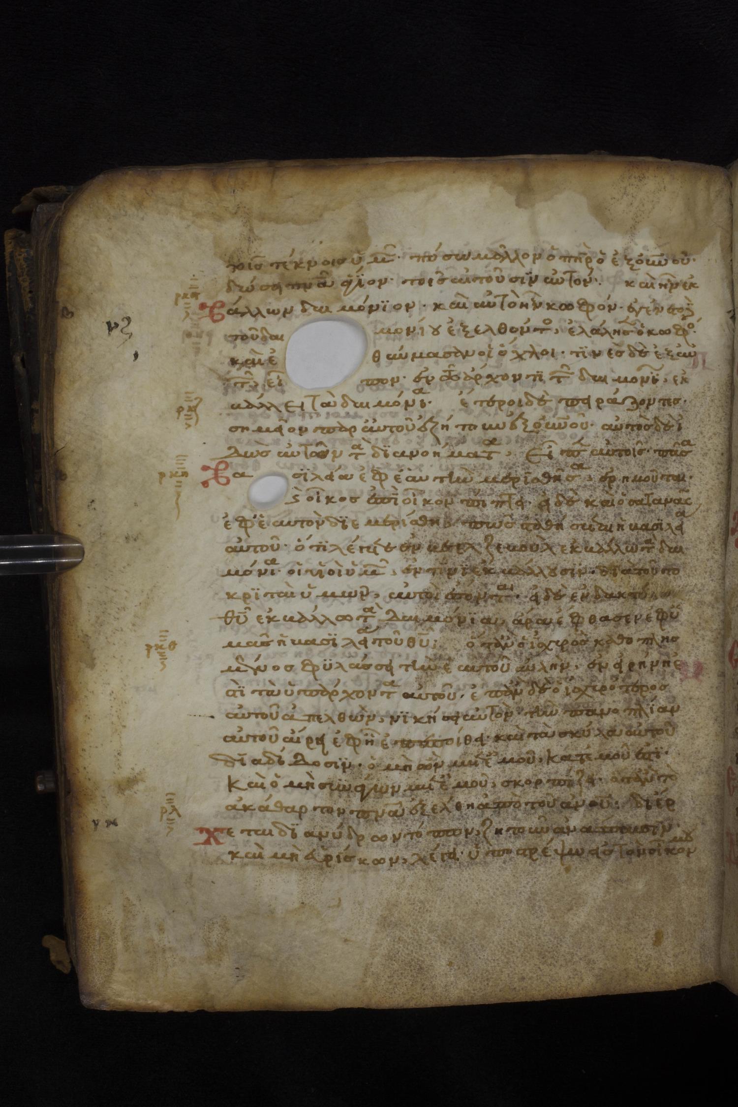 Twelfth century minuscule of the Gospels on parchment; 181 leaves, 1 column, 23-24 lines per column. Images were taken at the National Library of Greece in Athens.