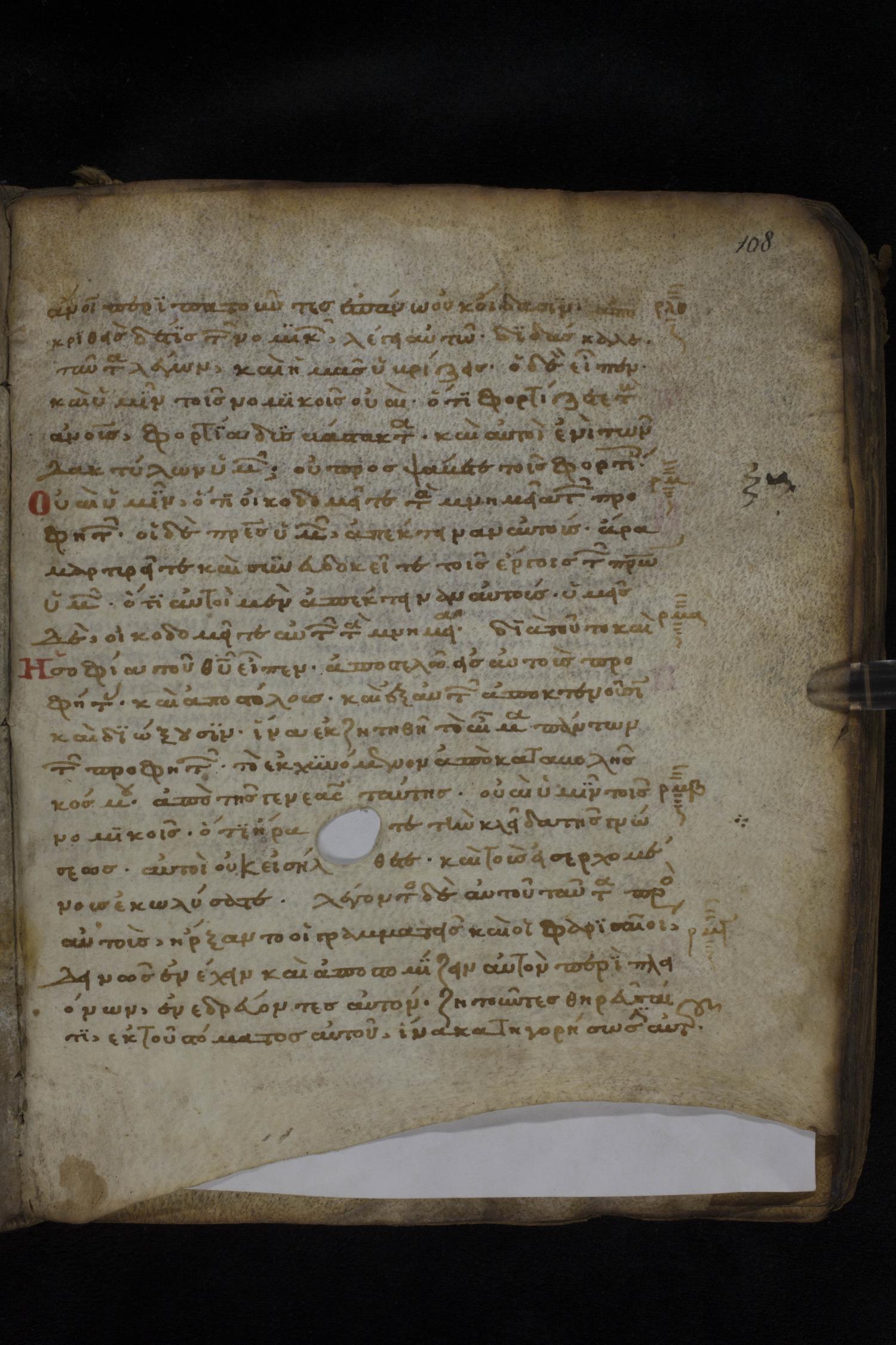 Twelfth century minuscule of the Gospels on parchment; 181 leaves, 1 column, 23-24 lines per column. Images were taken at the National Library of Greece in Athens.