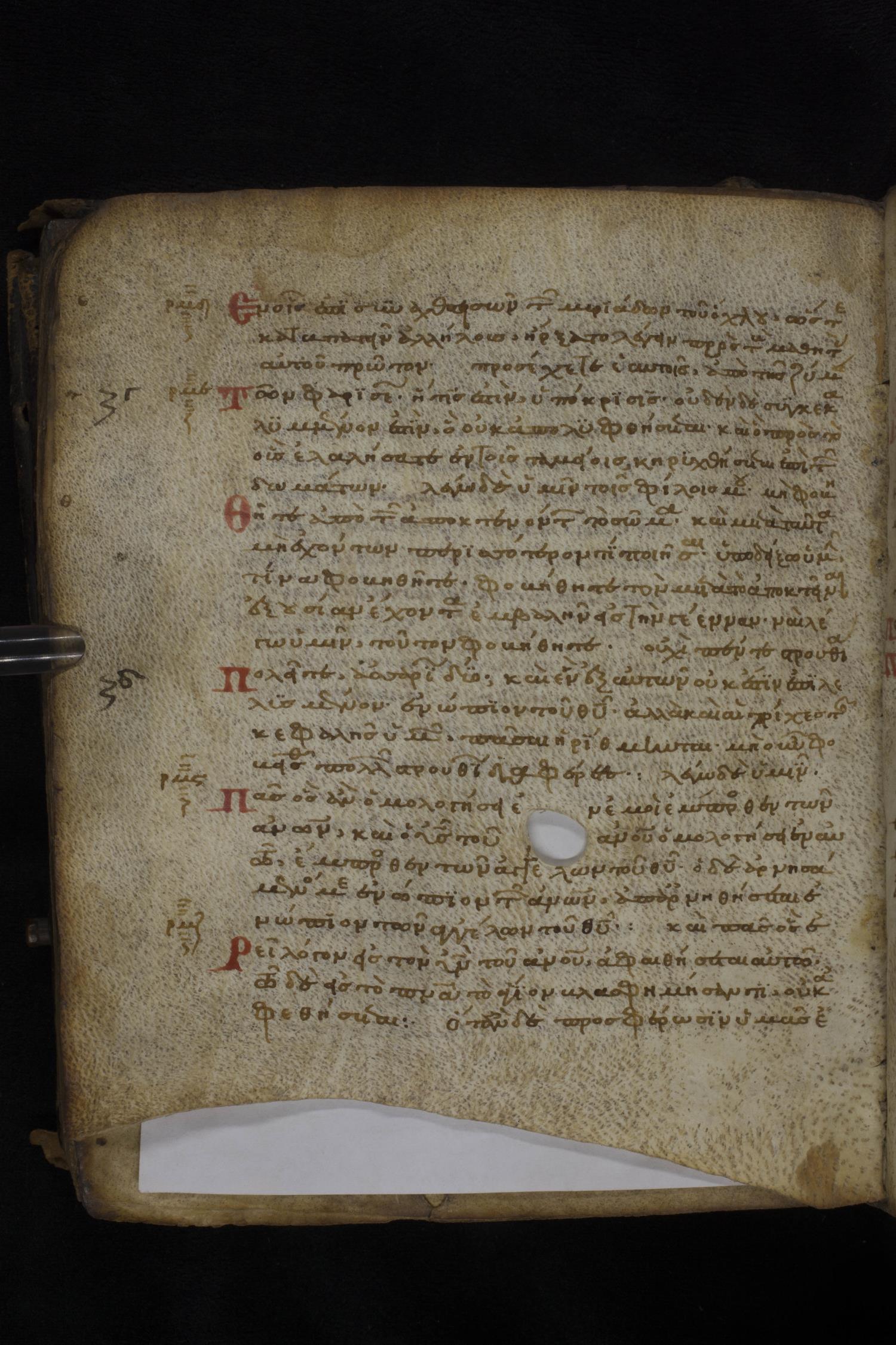 Twelfth century minuscule of the Gospels on parchment; 181 leaves, 1 column, 23-24 lines per column. Images were taken at the National Library of Greece in Athens.