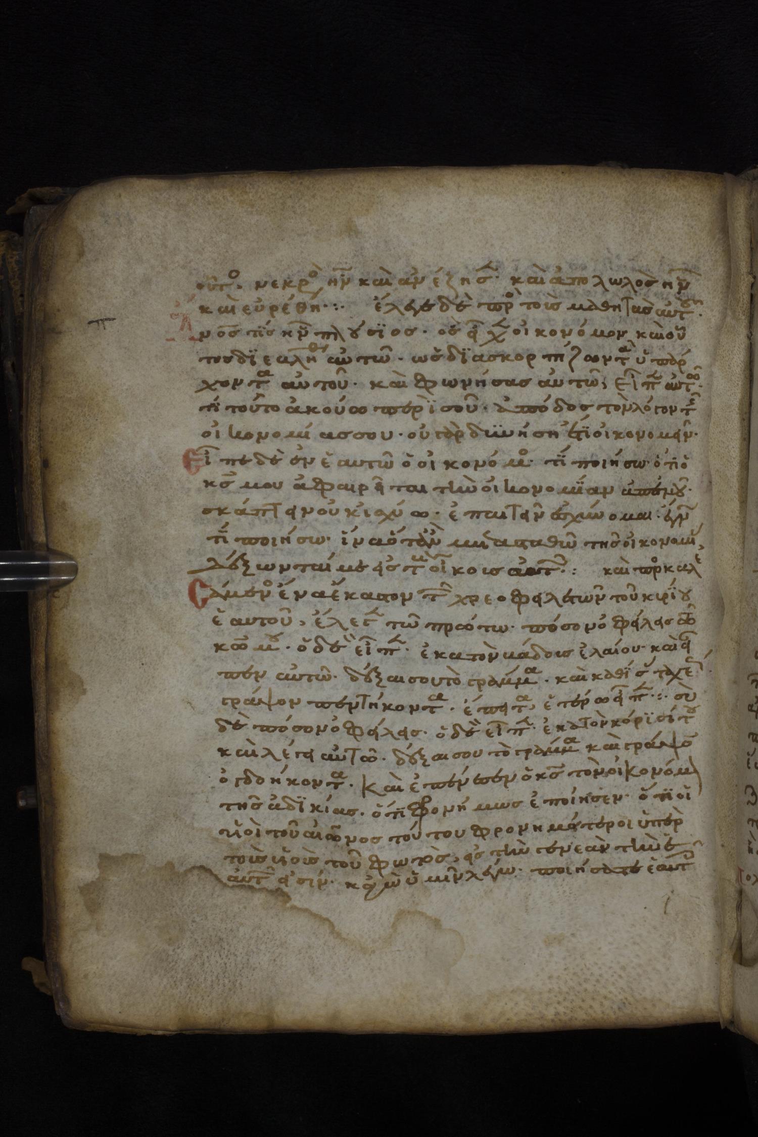 Twelfth century minuscule of the Gospels on parchment; 181 leaves, 1 column, 23-24 lines per column. Images were taken at the National Library of Greece in Athens.
