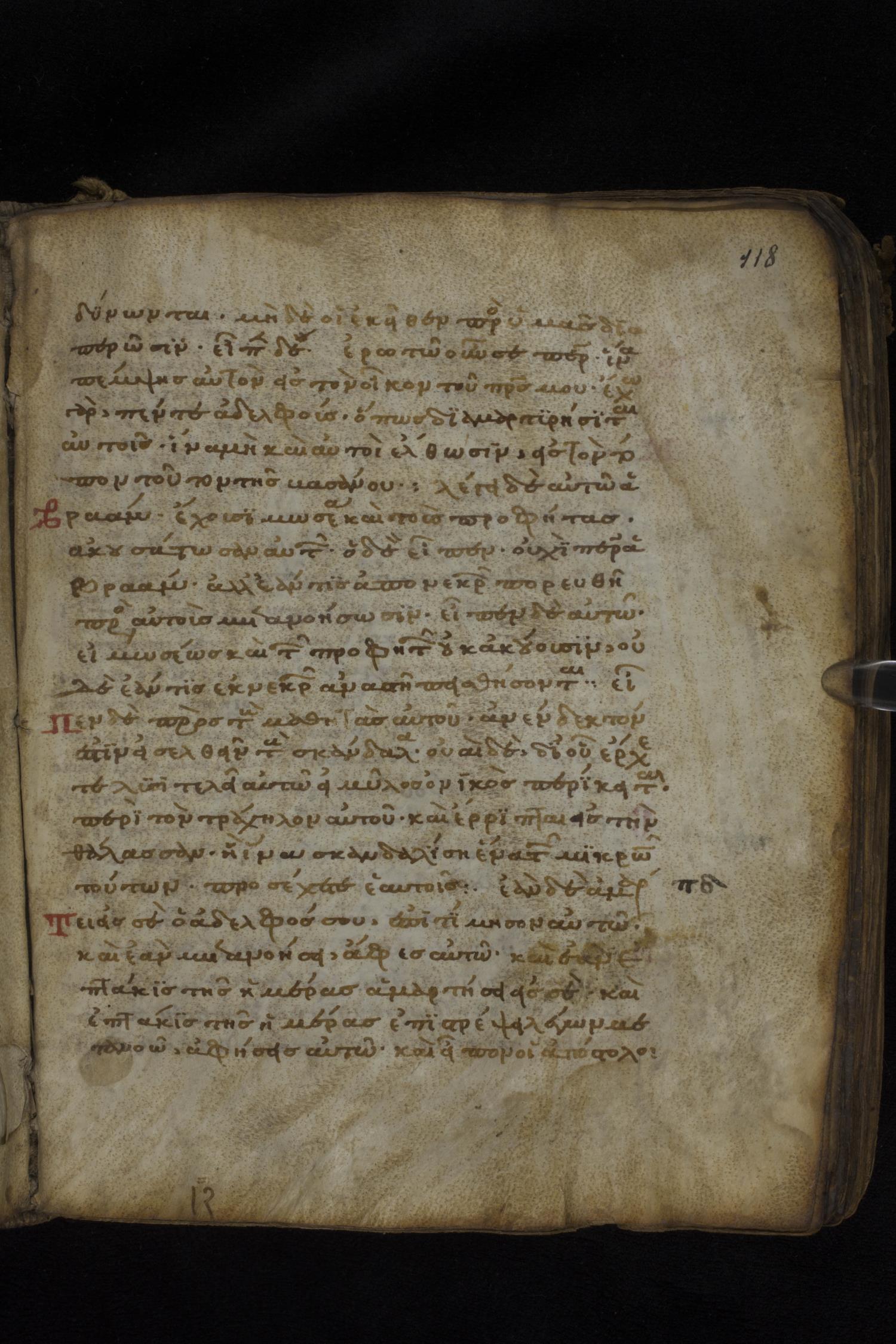 Twelfth century minuscule of the Gospels on parchment; 181 leaves, 1 column, 23-24 lines per column. Images were taken at the National Library of Greece in Athens.