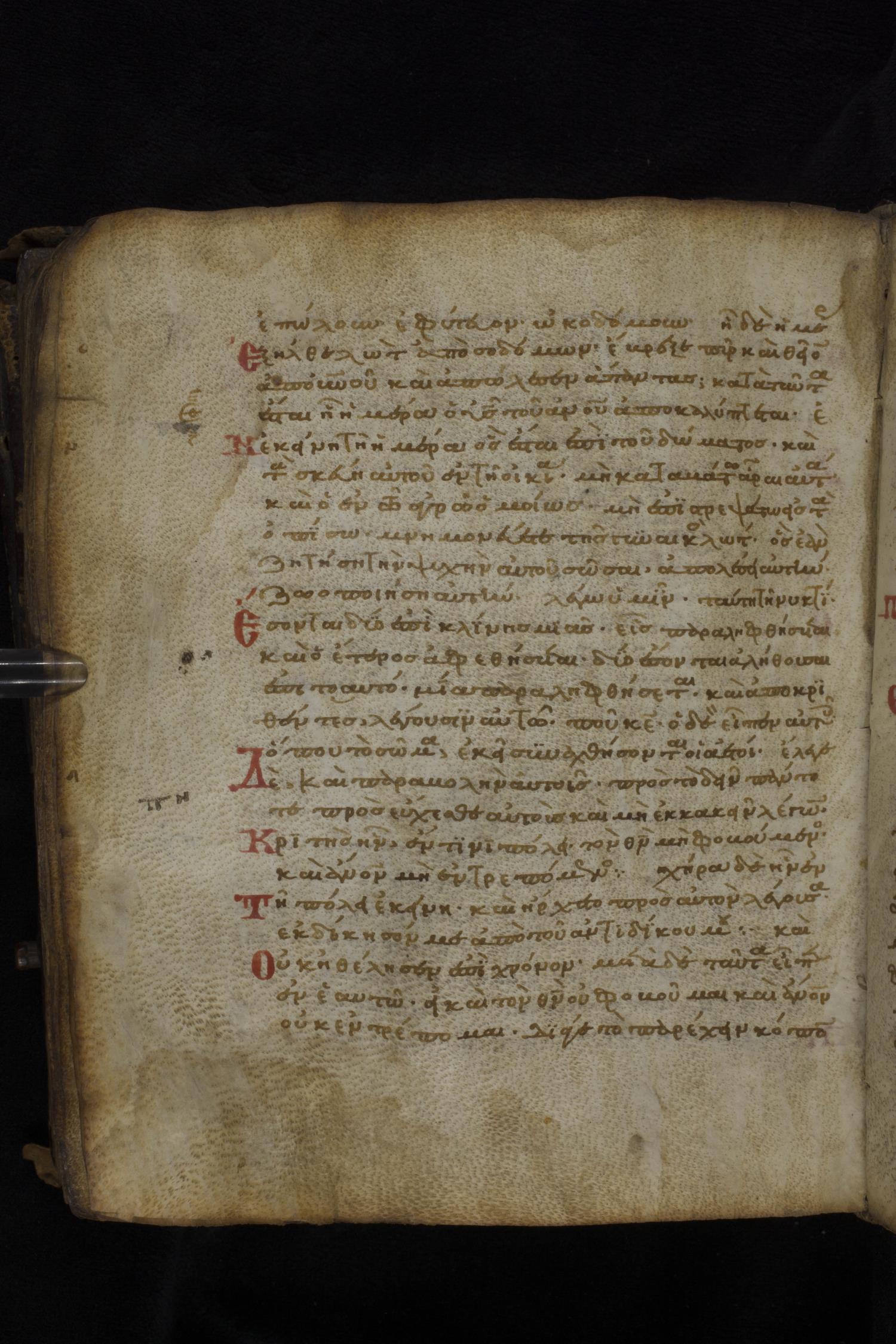 Twelfth century minuscule of the Gospels on parchment; 181 leaves, 1 column, 23-24 lines per column. Images were taken at the National Library of Greece in Athens.