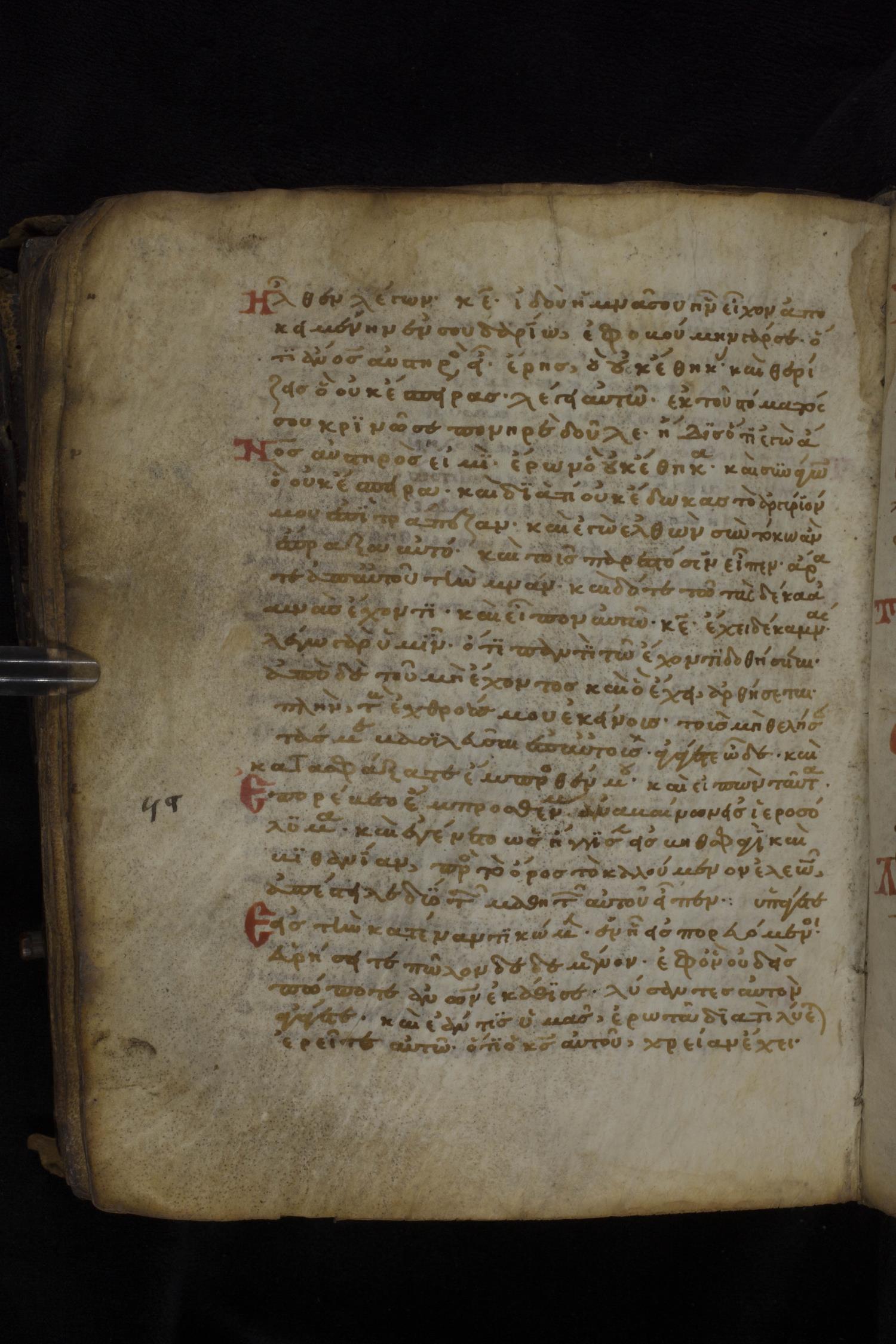 Twelfth century minuscule of the Gospels on parchment; 181 leaves, 1 column, 23-24 lines per column. Images were taken at the National Library of Greece in Athens.