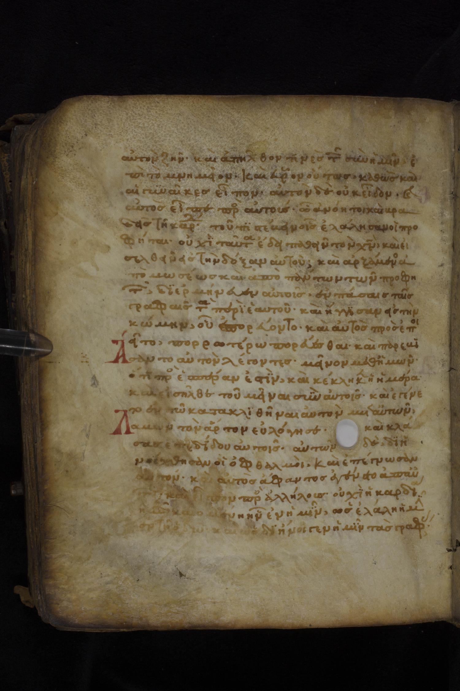 Twelfth century minuscule of the Gospels on parchment; 181 leaves, 1 column, 23-24 lines per column. Images were taken at the National Library of Greece in Athens.