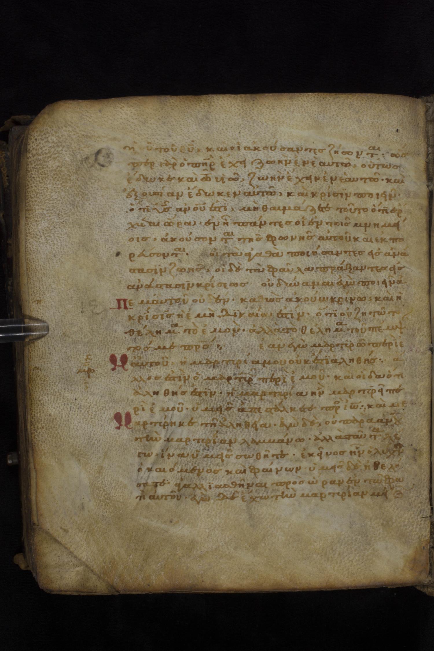 Twelfth century minuscule of the Gospels on parchment; 181 leaves, 1 column, 23-24 lines per column. Images were taken at the National Library of Greece in Athens.