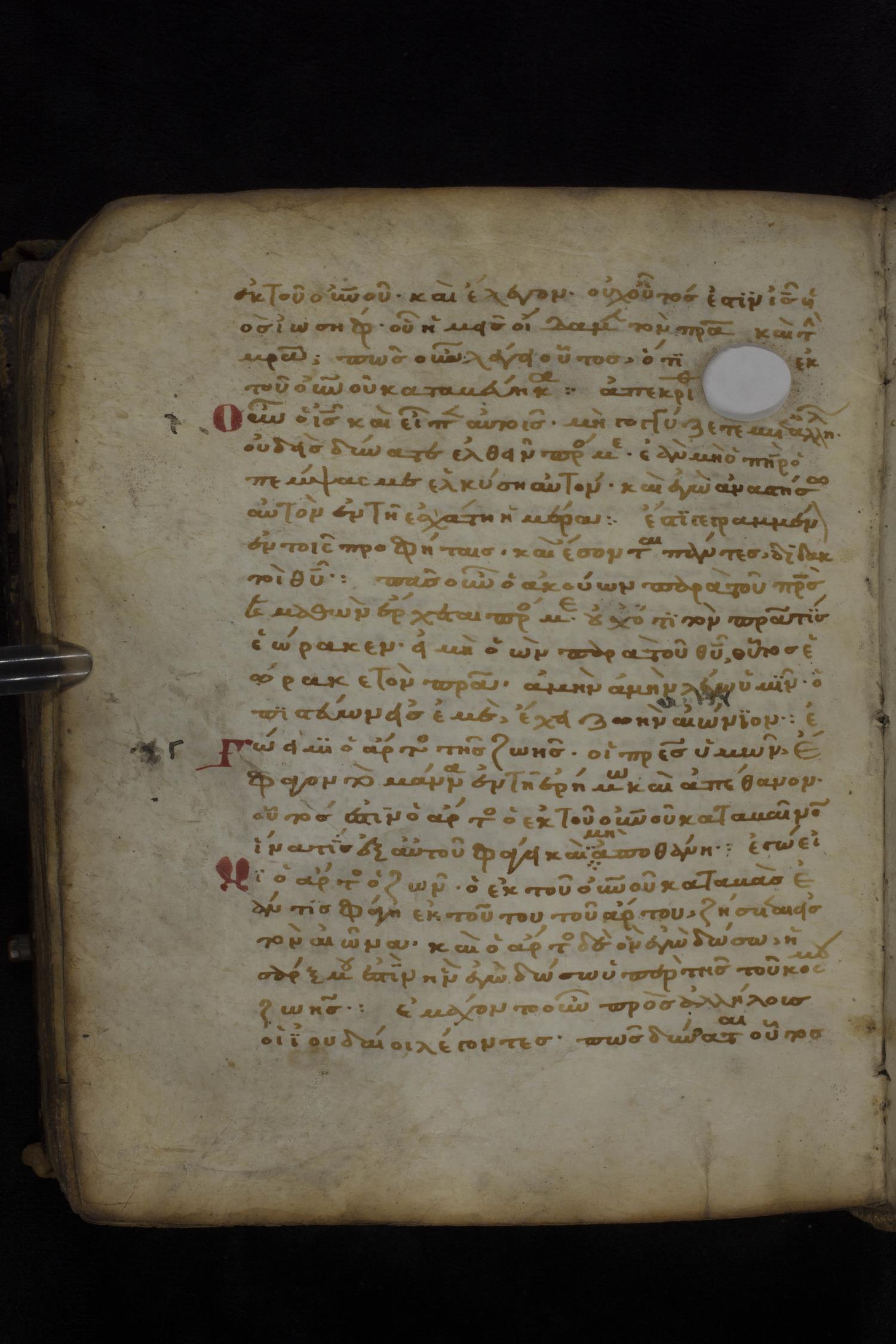 Twelfth century minuscule of the Gospels on parchment; 181 leaves, 1 column, 23-24 lines per column. Images were taken at the National Library of Greece in Athens.