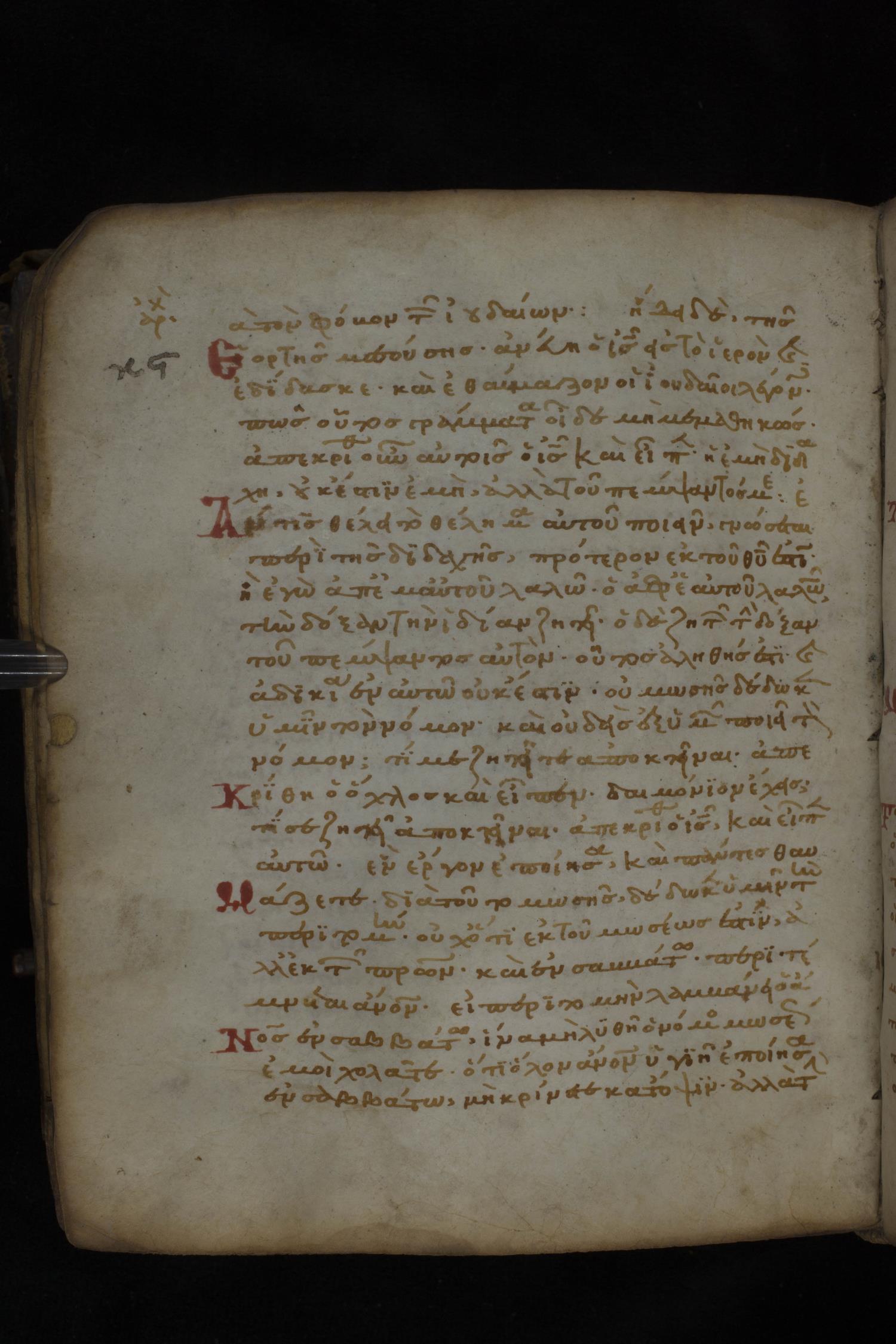 Twelfth century minuscule of the Gospels on parchment; 181 leaves, 1 column, 23-24 lines per column. Images were taken at the National Library of Greece in Athens.