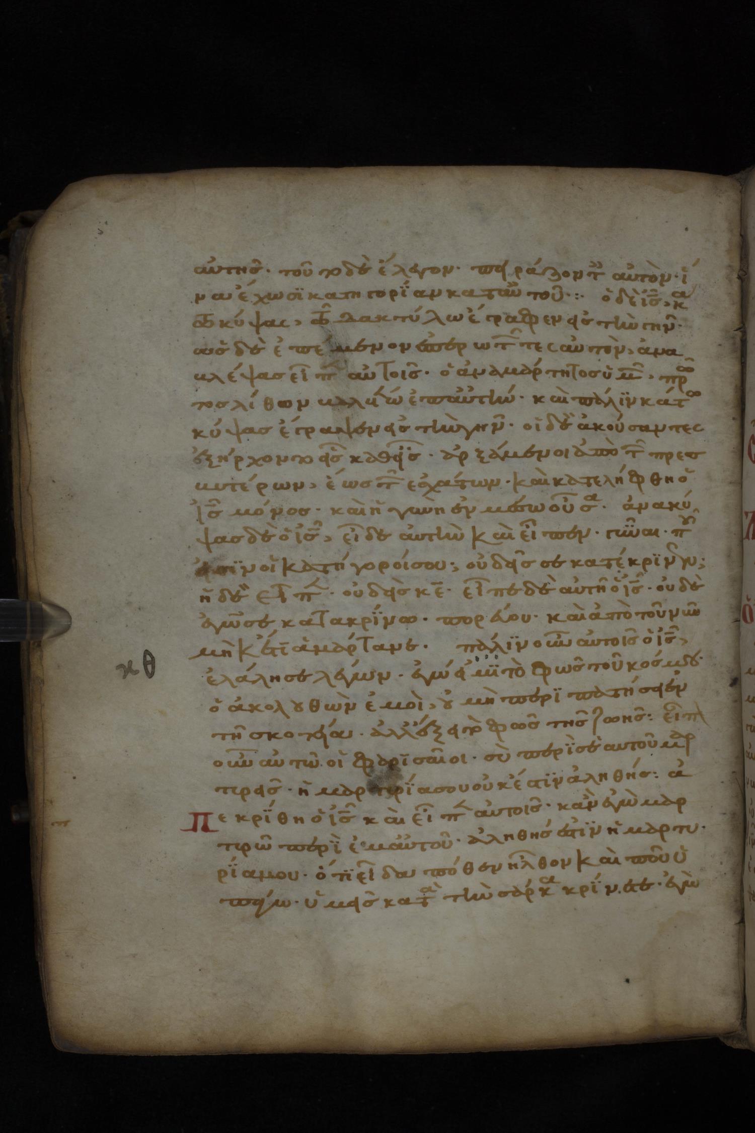 Twelfth century minuscule of the Gospels on parchment; 181 leaves, 1 column, 23-24 lines per column. Images were taken at the National Library of Greece in Athens.