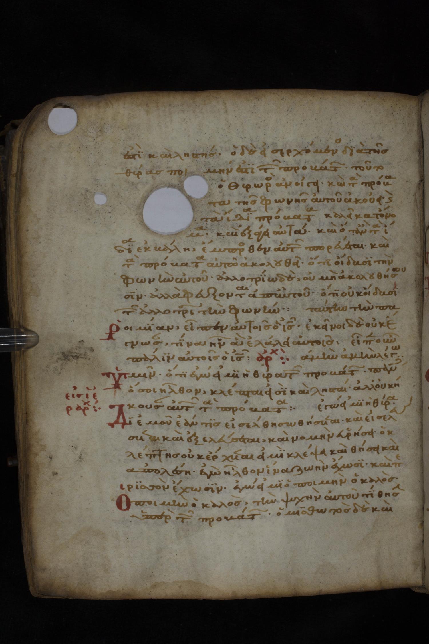 Twelfth century minuscule of the Gospels on parchment; 181 leaves, 1 column, 23-24 lines per column. Images were taken at the National Library of Greece in Athens.