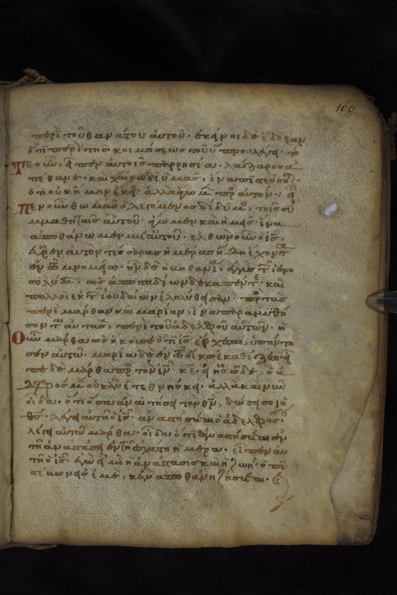 Twelfth century minuscule of the Gospels on parchment; 181 leaves, 1 column, 23-24 lines per column. Images were taken at the National Library of Greece in Athens.