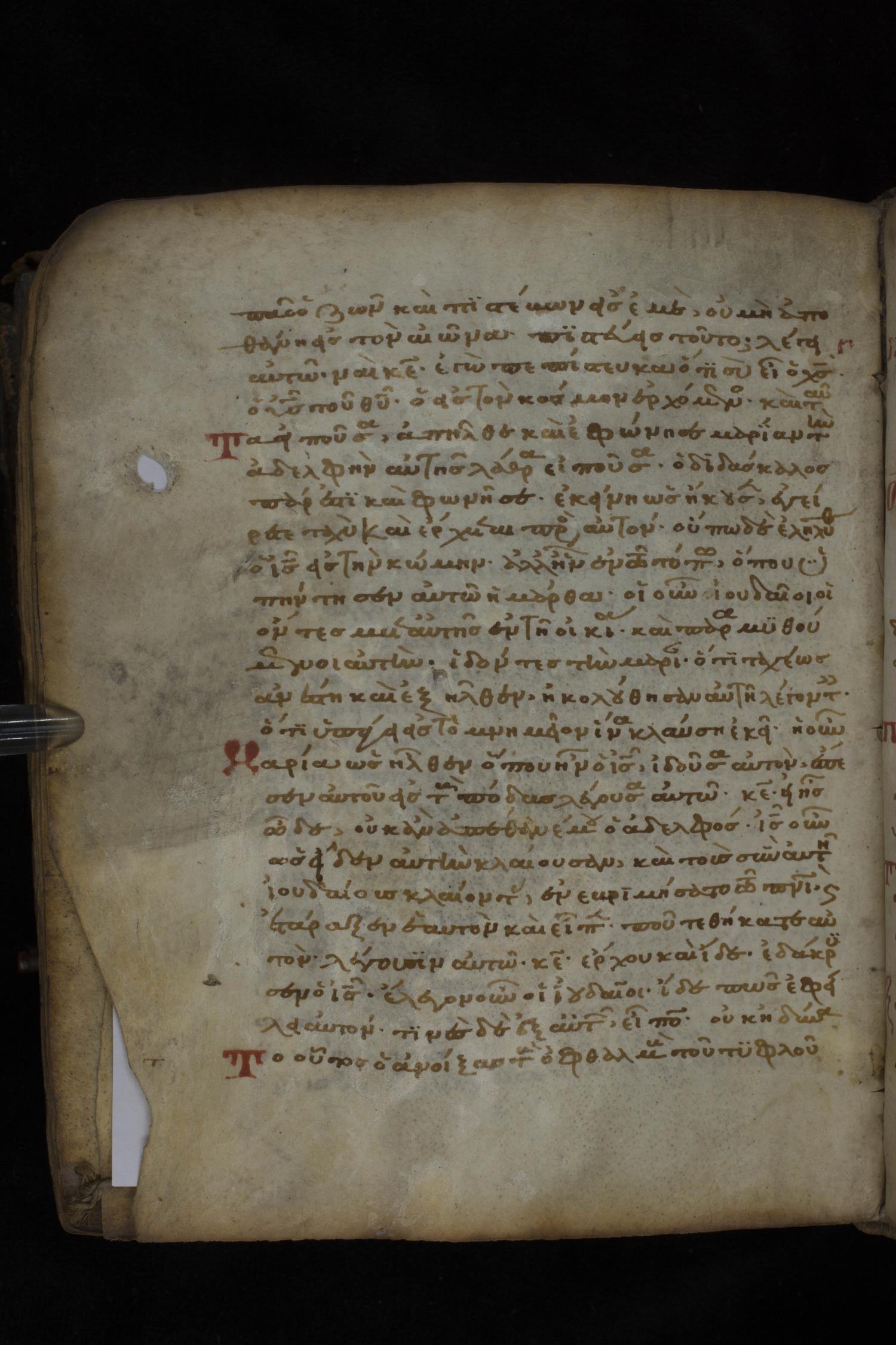 Twelfth century minuscule of the Gospels on parchment; 181 leaves, 1 column, 23-24 lines per column. Images were taken at the National Library of Greece in Athens.