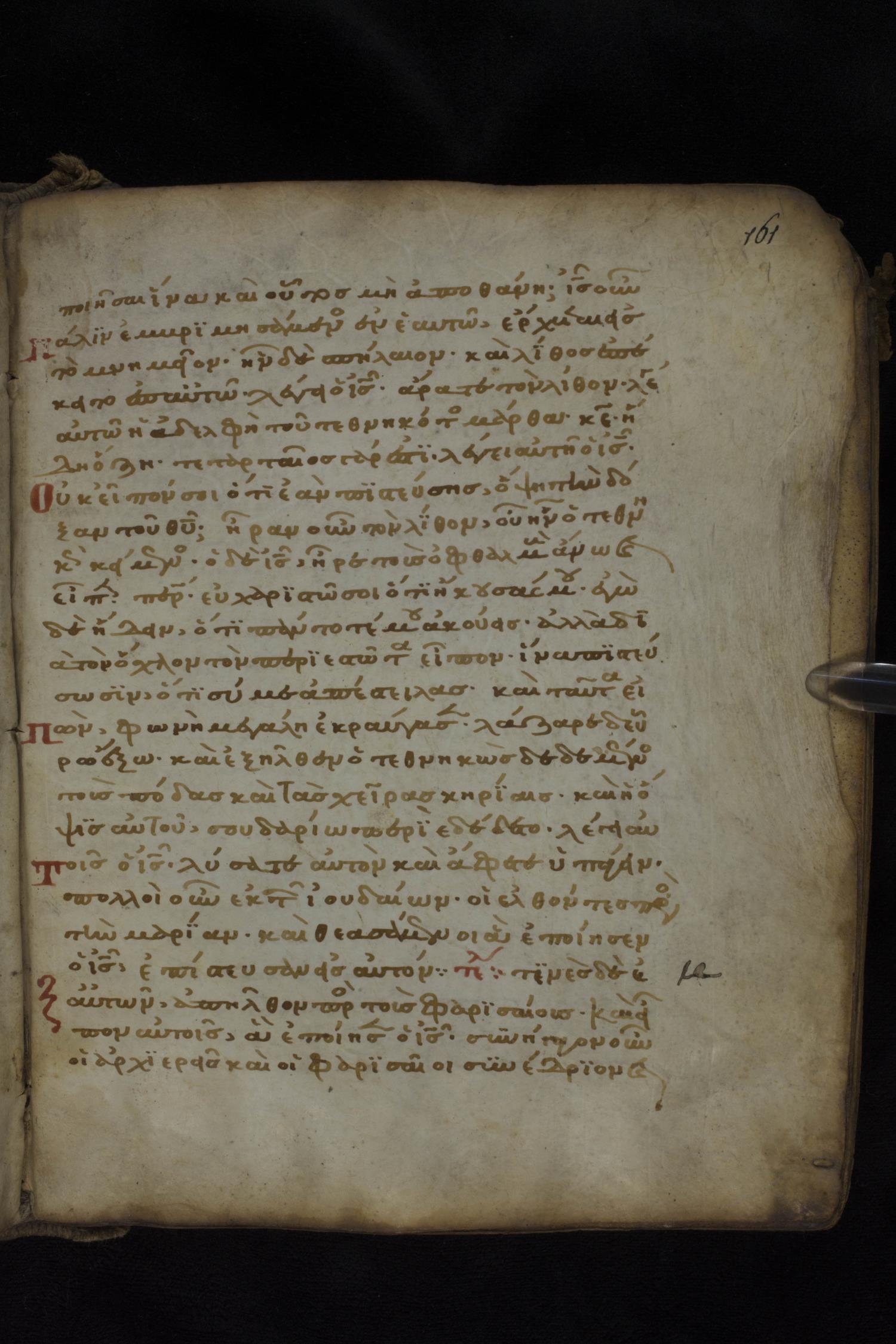 Twelfth century minuscule of the Gospels on parchment; 181 leaves, 1 column, 23-24 lines per column. Images were taken at the National Library of Greece in Athens.