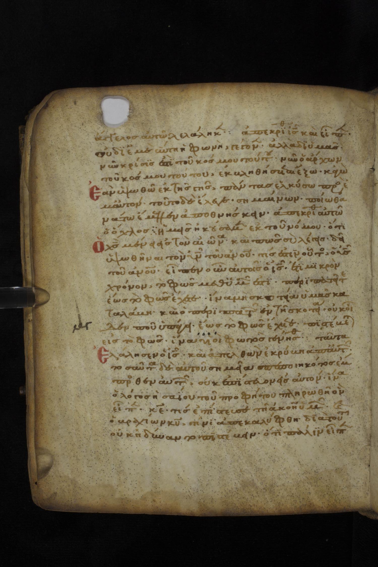 Twelfth century minuscule of the Gospels on parchment; 181 leaves, 1 column, 23-24 lines per column. Images were taken at the National Library of Greece in Athens.