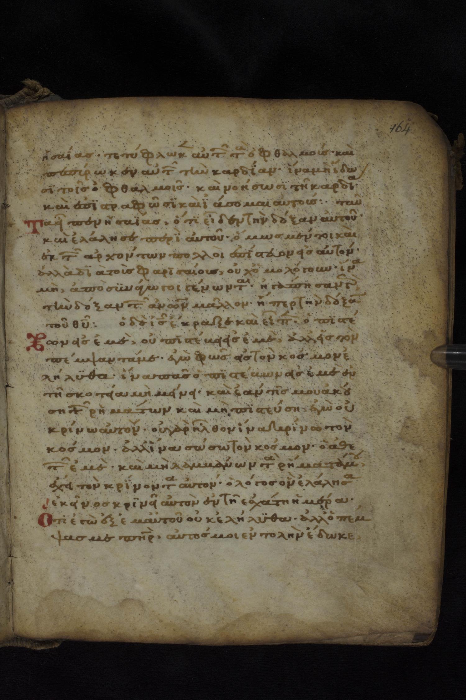 Twelfth century minuscule of the Gospels on parchment; 181 leaves, 1 column, 23-24 lines per column. Images were taken at the National Library of Greece in Athens.