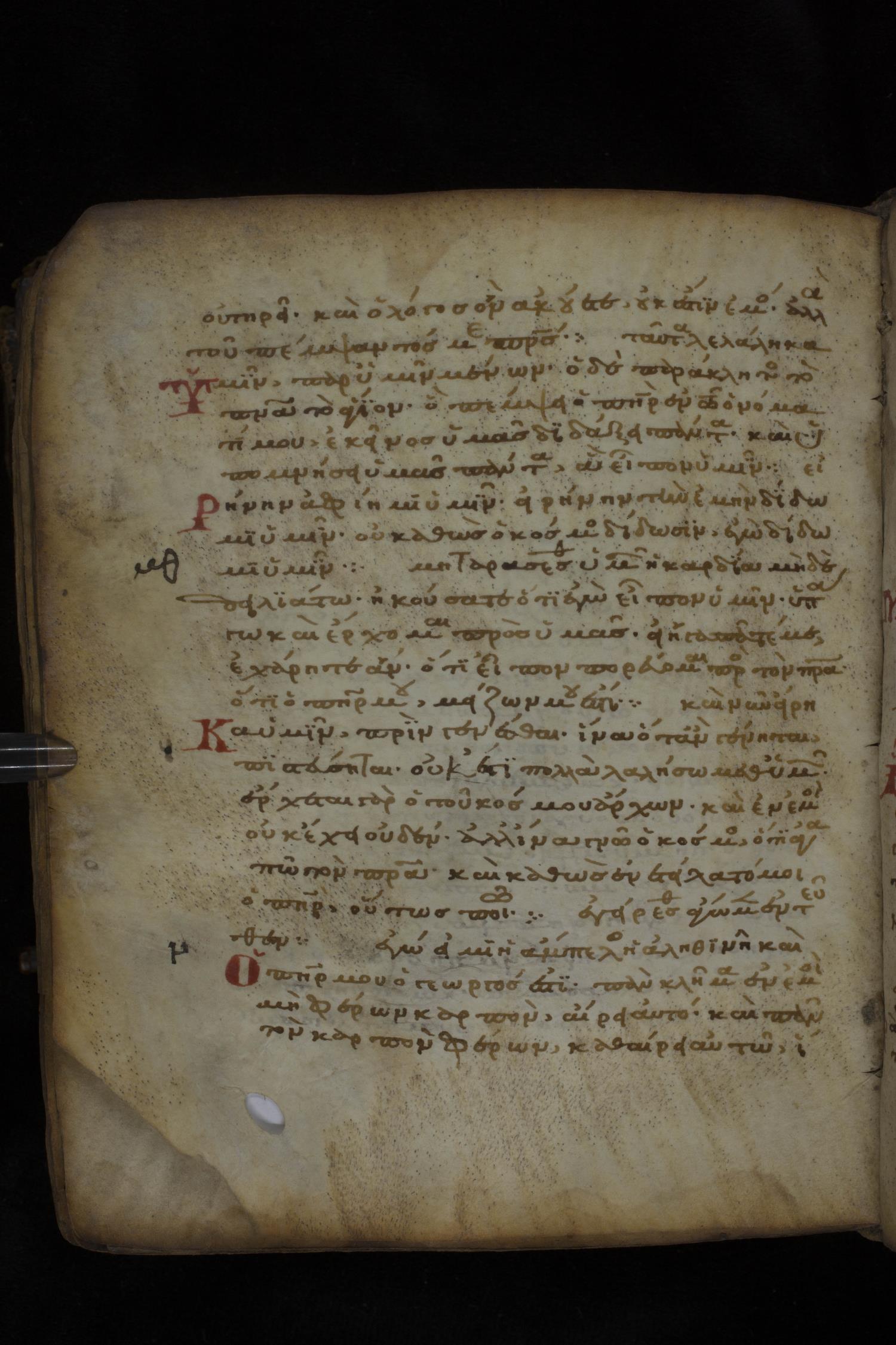 Twelfth century minuscule of the Gospels on parchment; 181 leaves, 1 column, 23-24 lines per column. Images were taken at the National Library of Greece in Athens.