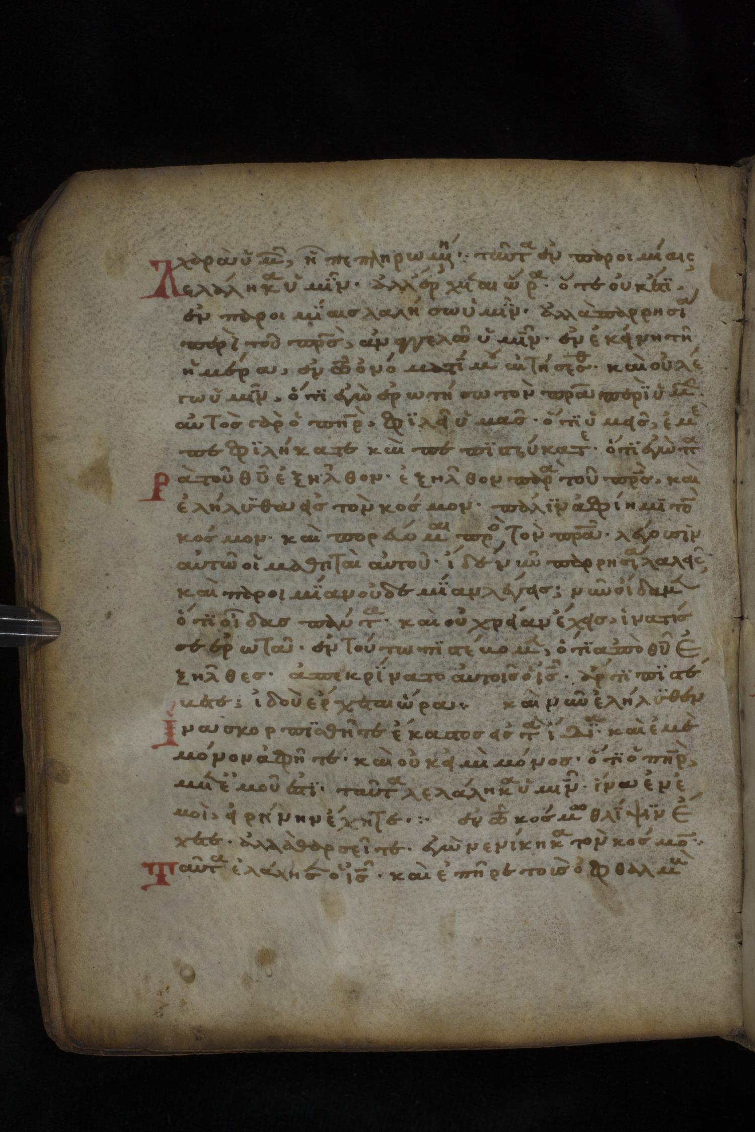 Twelfth century minuscule of the Gospels on parchment; 181 leaves, 1 column, 23-24 lines per column. Images were taken at the National Library of Greece in Athens.