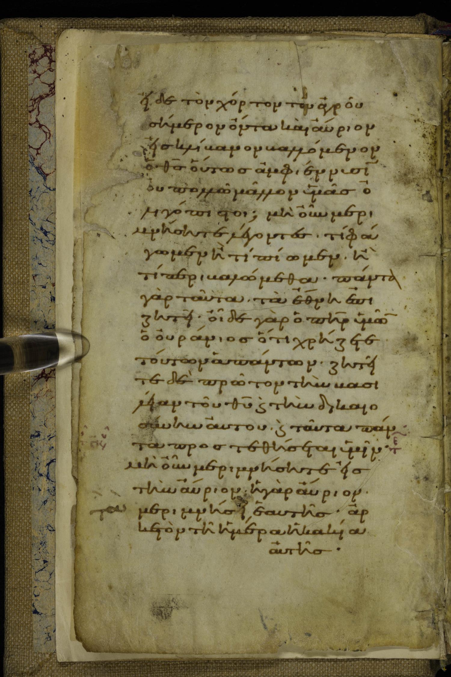 Tenth century minuscule of the Gospels on parchment; 220 leaves, 1 column, 20-21 lines per column. Images were taken at the National Library of Greece in Athens.