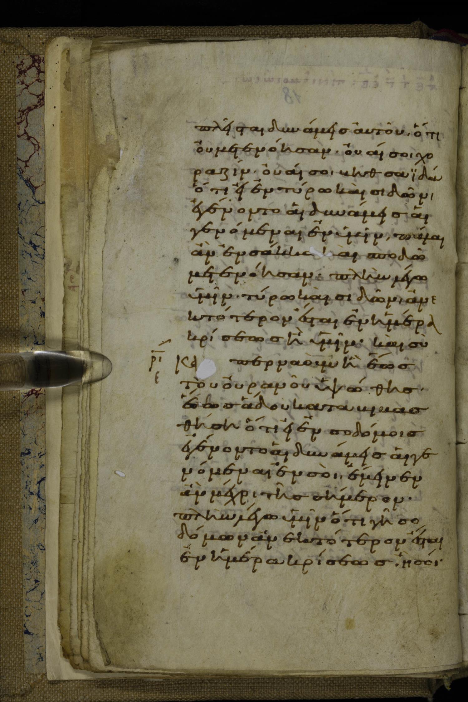 Tenth century minuscule of the Gospels on parchment; 220 leaves, 1 column, 20-21 lines per column. Images were taken at the National Library of Greece in Athens.