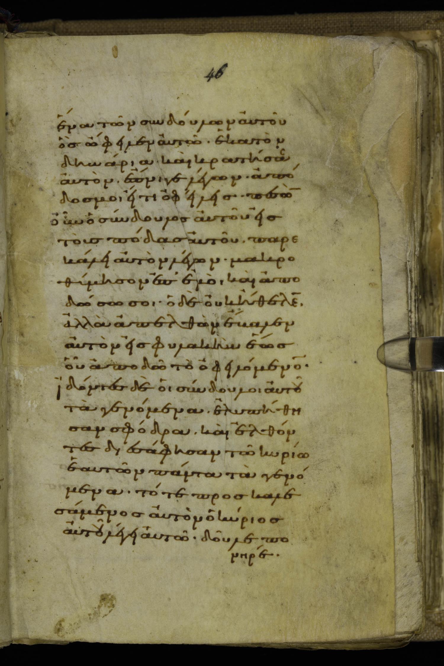 Tenth century minuscule of the Gospels on parchment; 220 leaves, 1 column, 20-21 lines per column. Images were taken at the National Library of Greece in Athens.