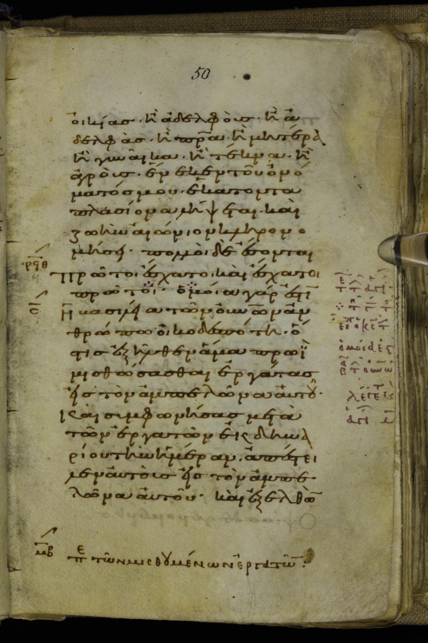 Tenth century minuscule of the Gospels on parchment; 220 leaves, 1 column, 20-21 lines per column. Images were taken at the National Library of Greece in Athens.