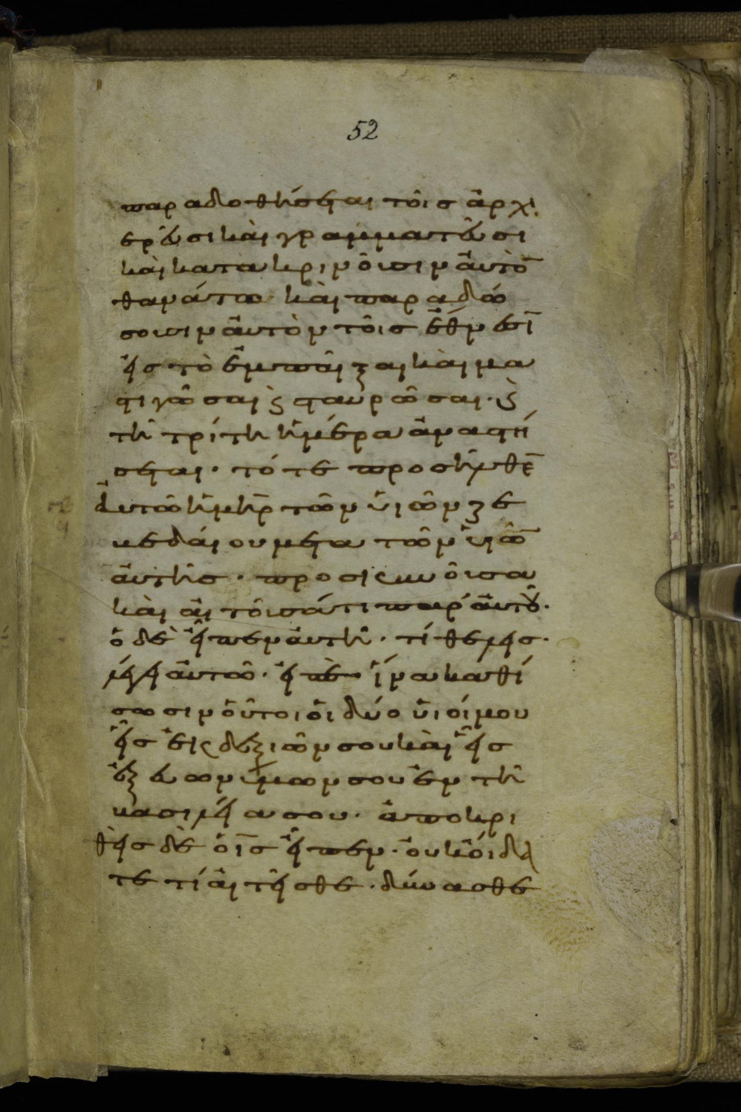 Tenth century minuscule of the Gospels on parchment; 220 leaves, 1 column, 20-21 lines per column. Images were taken at the National Library of Greece in Athens.