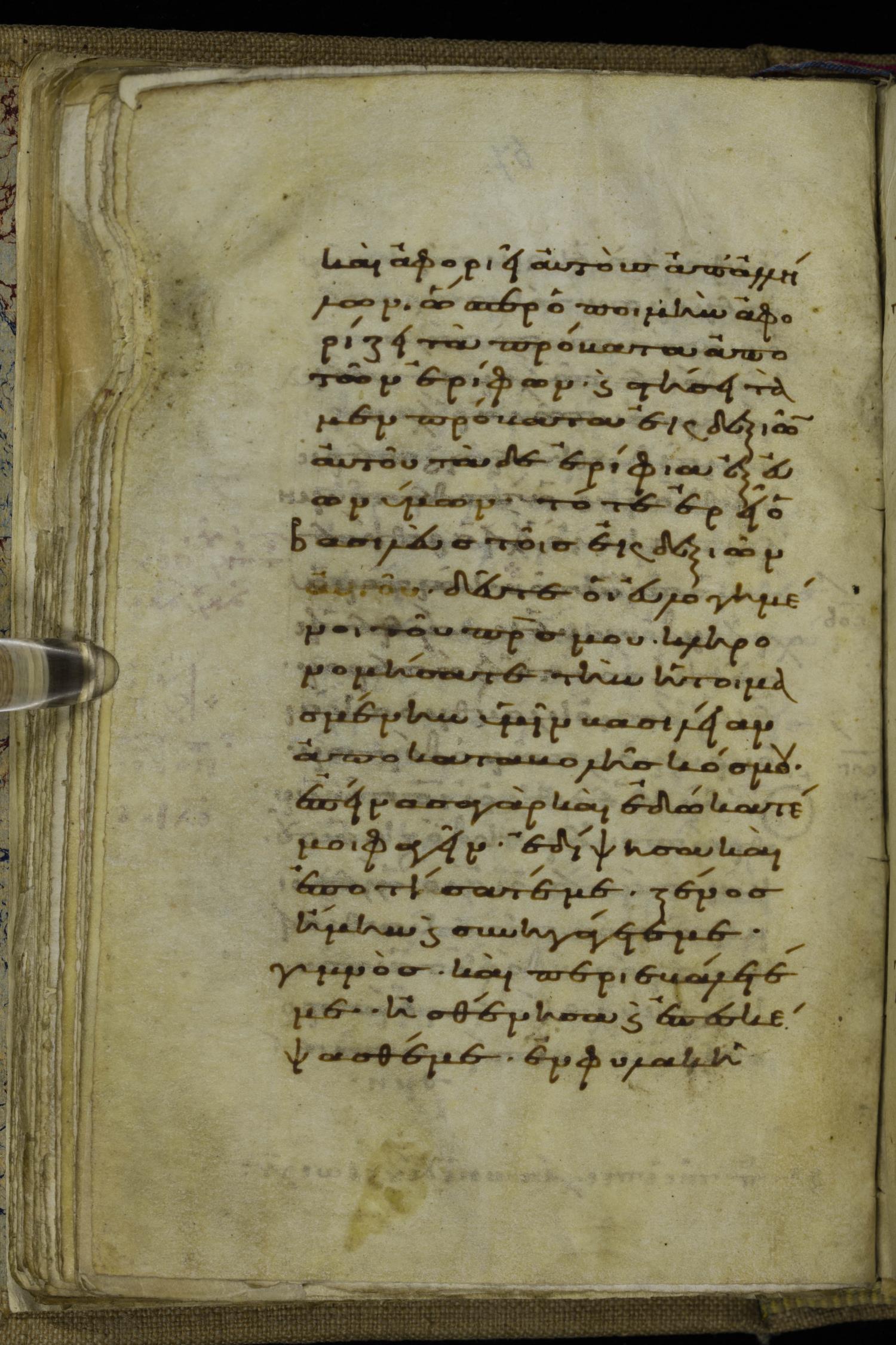 Tenth century minuscule of the Gospels on parchment; 220 leaves, 1 column, 20-21 lines per column. Images were taken at the National Library of Greece in Athens.