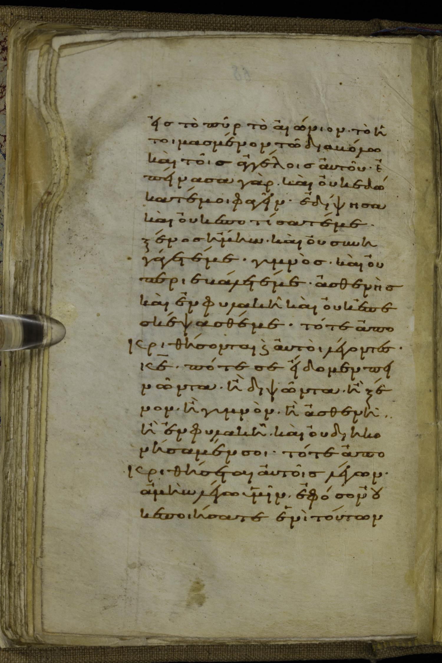 Tenth century minuscule of the Gospels on parchment; 220 leaves, 1 column, 20-21 lines per column. Images were taken at the National Library of Greece in Athens.