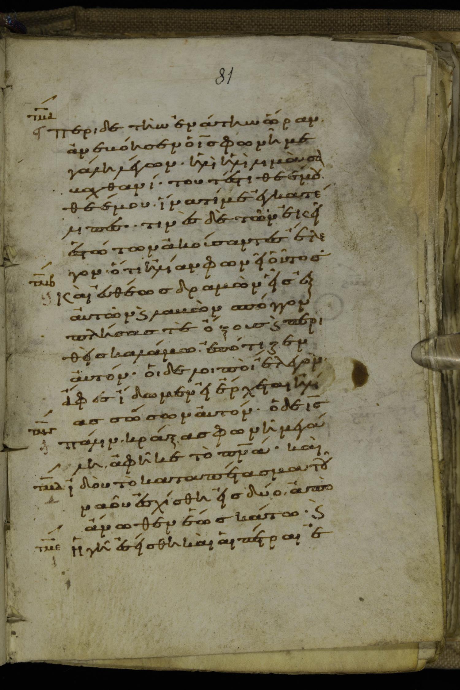Tenth century minuscule of the Gospels on parchment; 220 leaves, 1 column, 20-21 lines per column. Images were taken at the National Library of Greece in Athens.