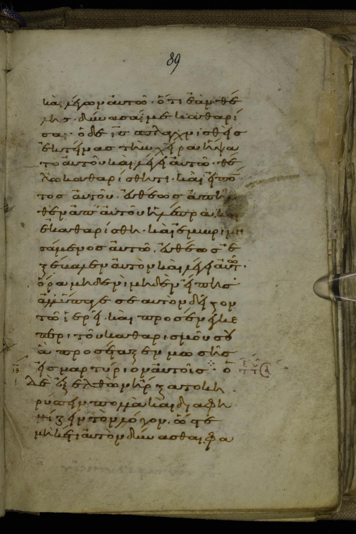Tenth century minuscule of the Gospels on parchment; 220 leaves, 1 column, 20-21 lines per column. Images were taken at the National Library of Greece in Athens.