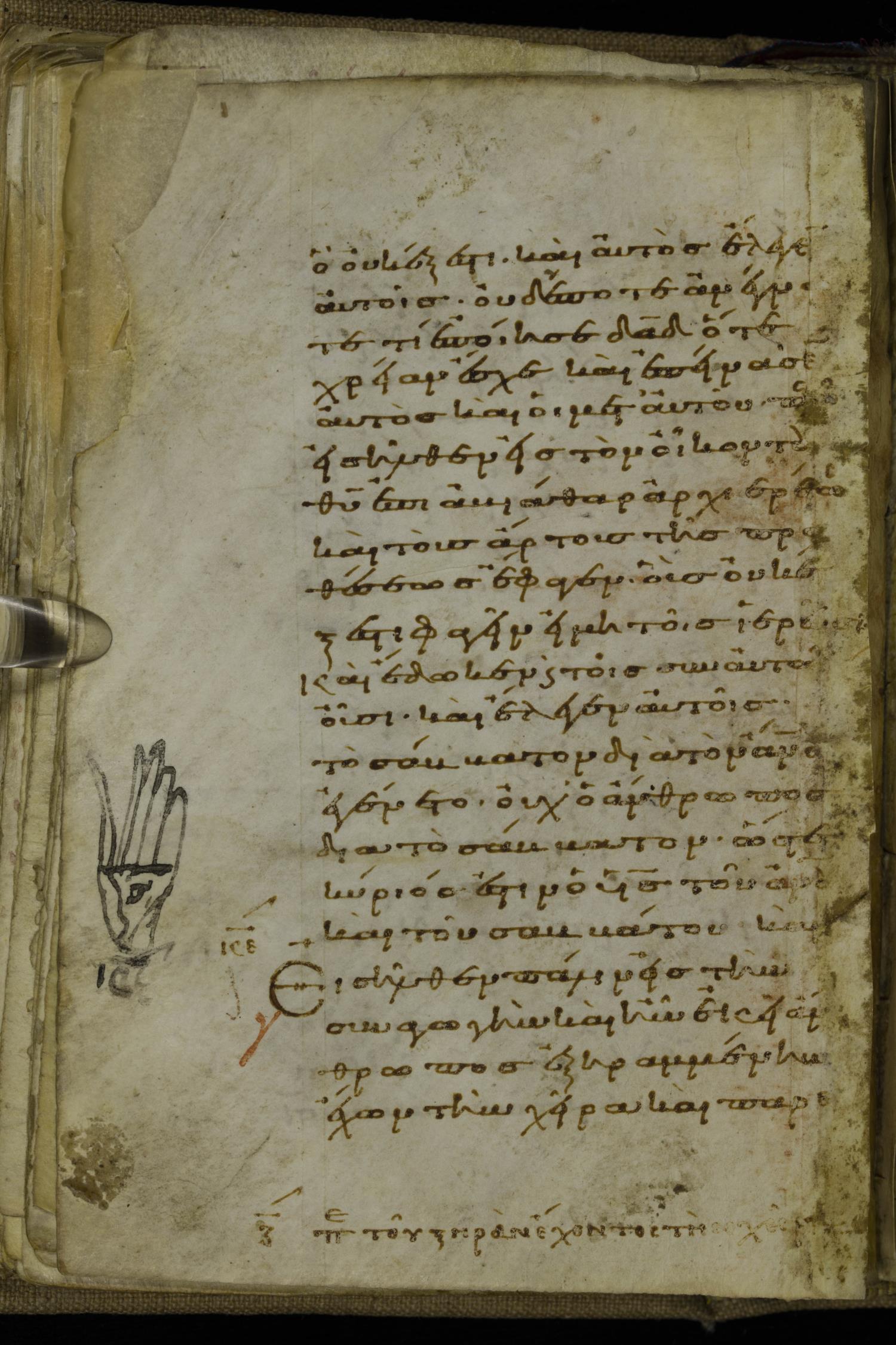 Tenth century minuscule of the Gospels on parchment; 220 leaves, 1 column, 20-21 lines per column. Images were taken at the National Library of Greece in Athens.