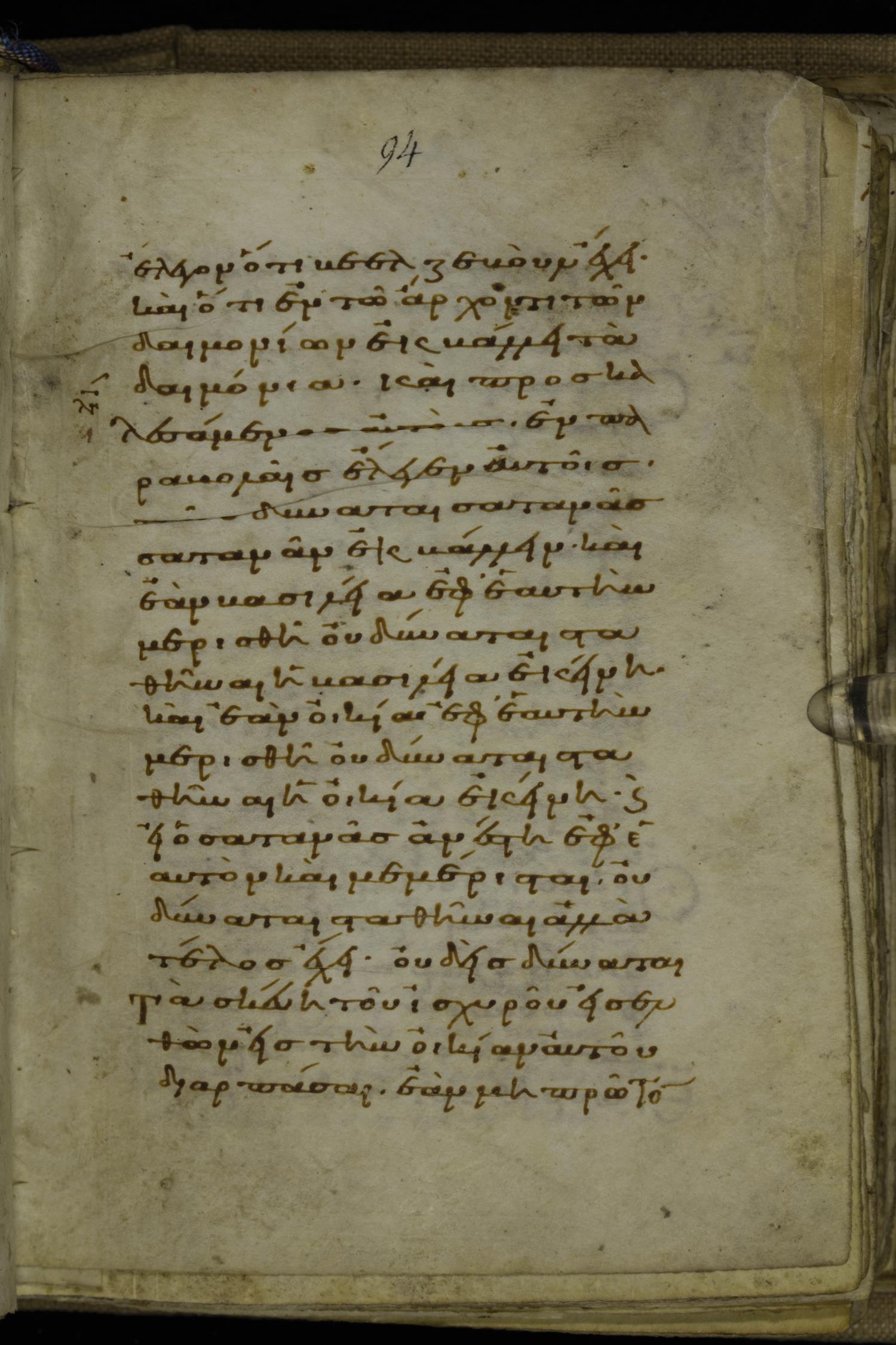 Tenth century minuscule of the Gospels on parchment; 220 leaves, 1 column, 20-21 lines per column. Images were taken at the National Library of Greece in Athens.