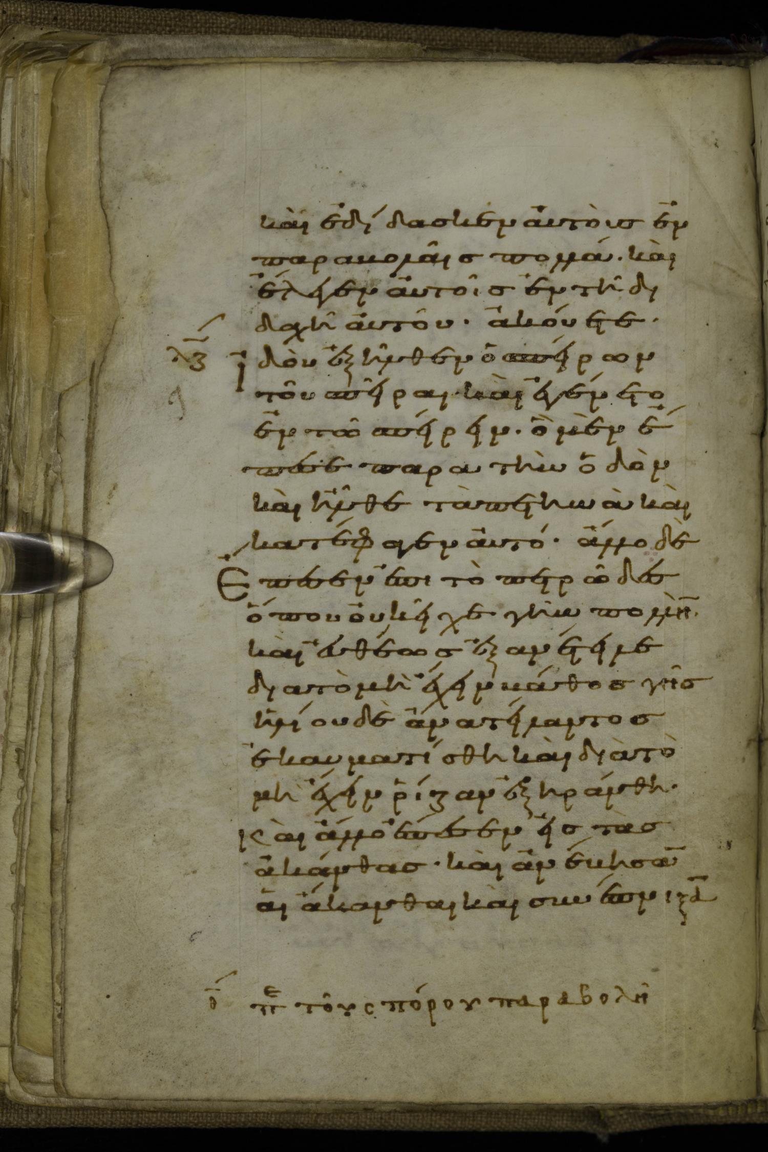 Tenth century minuscule of the Gospels on parchment; 220 leaves, 1 column, 20-21 lines per column. Images were taken at the National Library of Greece in Athens.