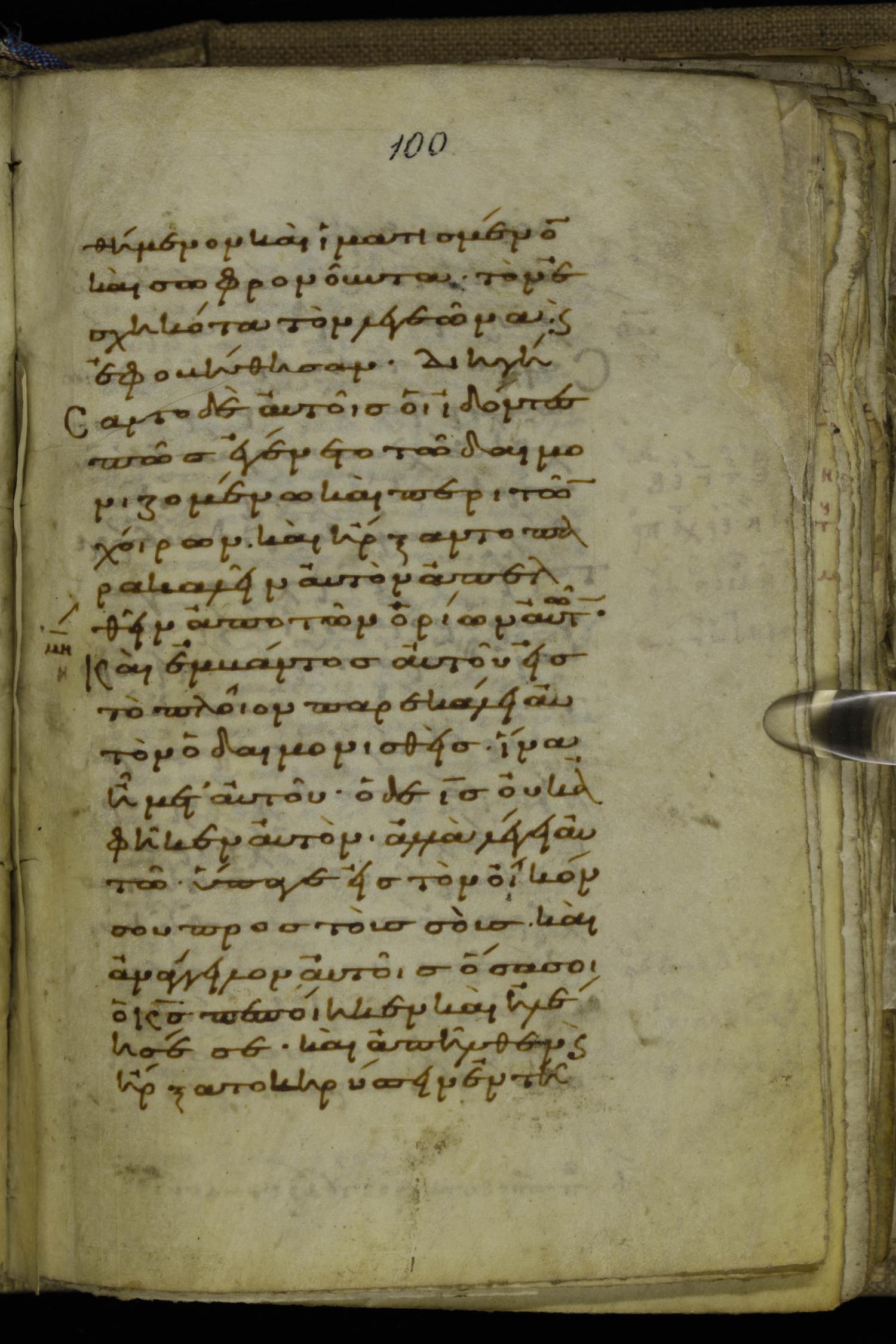 Tenth century minuscule of the Gospels on parchment; 220 leaves, 1 column, 20-21 lines per column. Images were taken at the National Library of Greece in Athens.