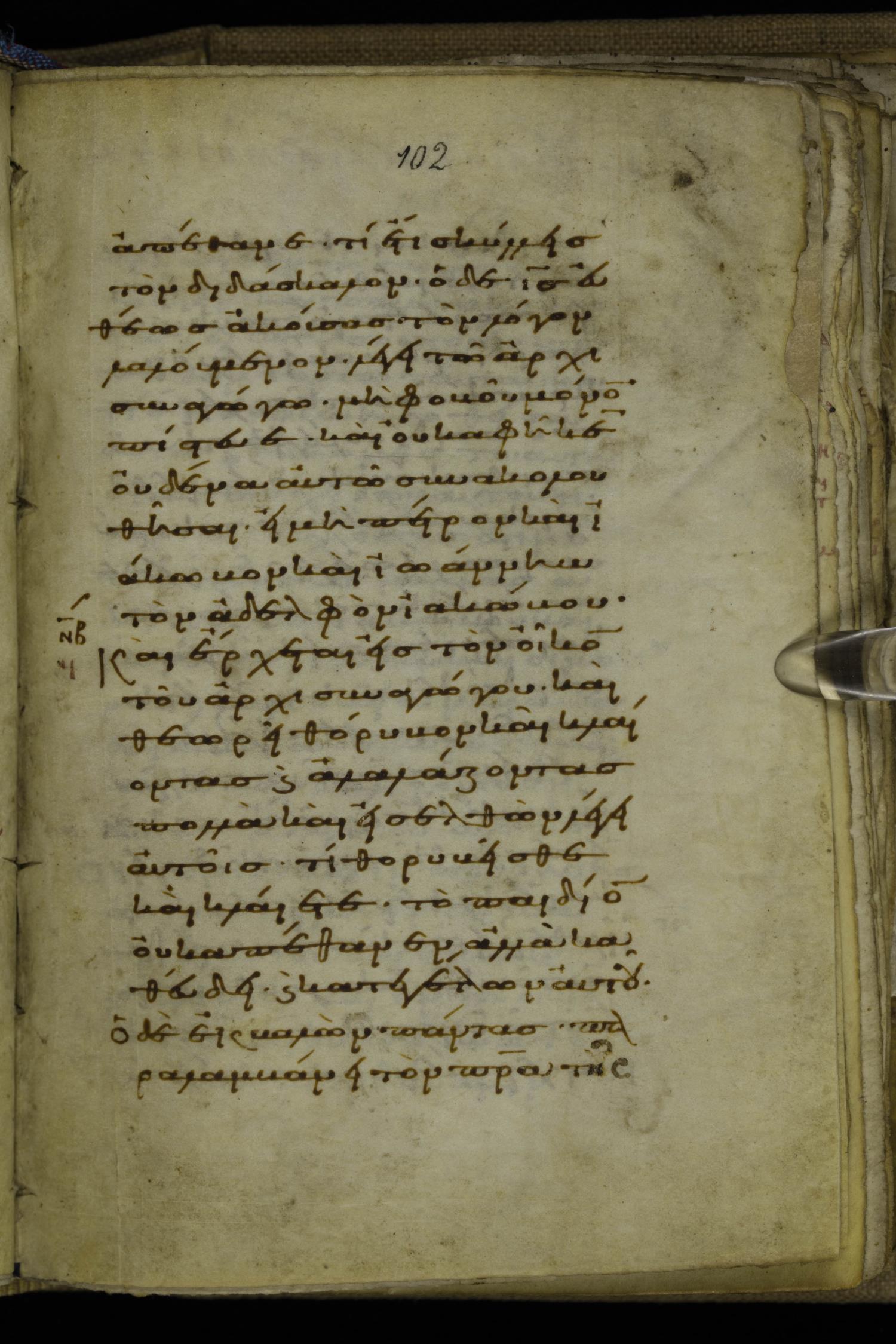 Tenth century minuscule of the Gospels on parchment; 220 leaves, 1 column, 20-21 lines per column. Images were taken at the National Library of Greece in Athens.