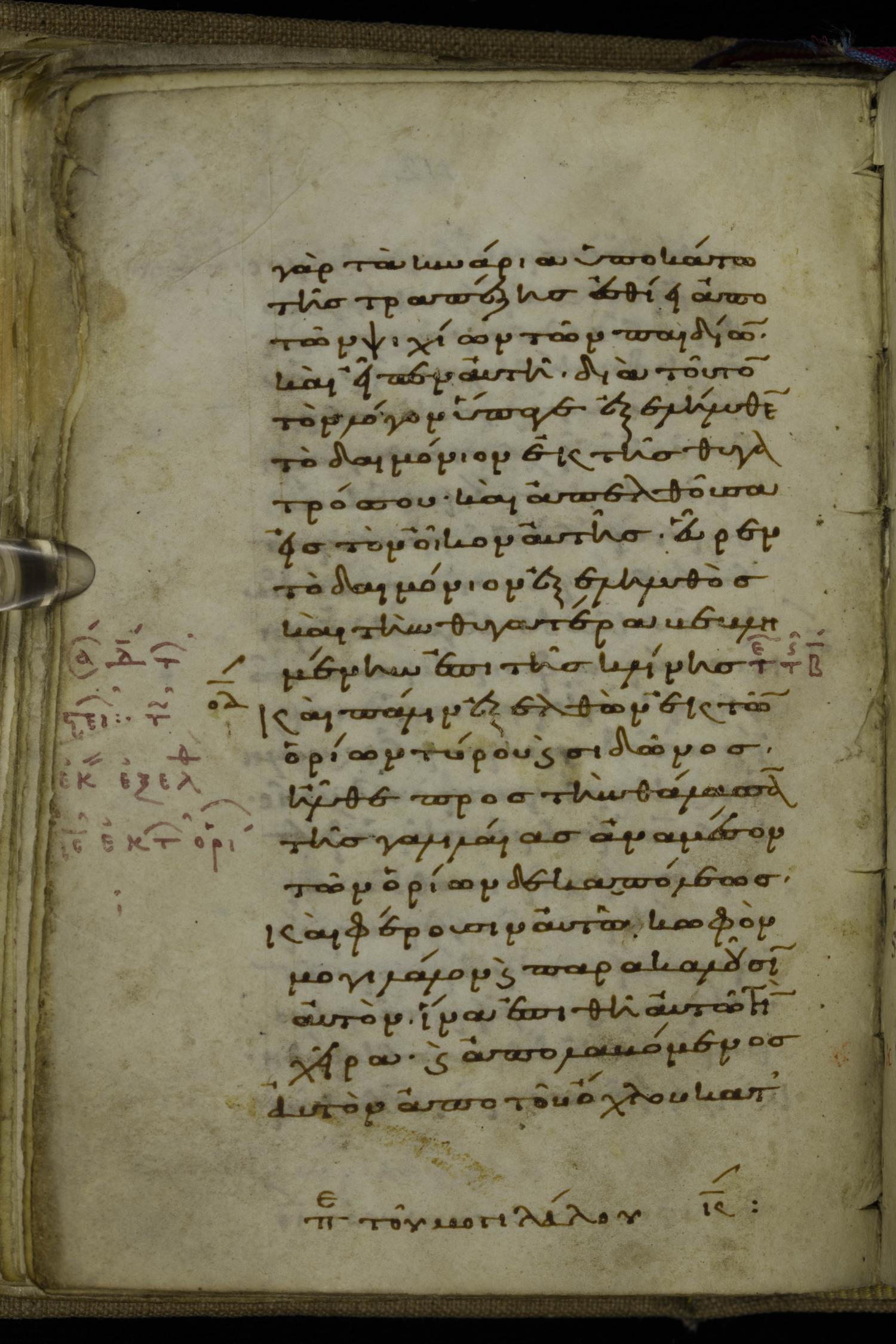 Tenth century minuscule of the Gospels on parchment; 220 leaves, 1 column, 20-21 lines per column. Images were taken at the National Library of Greece in Athens.
