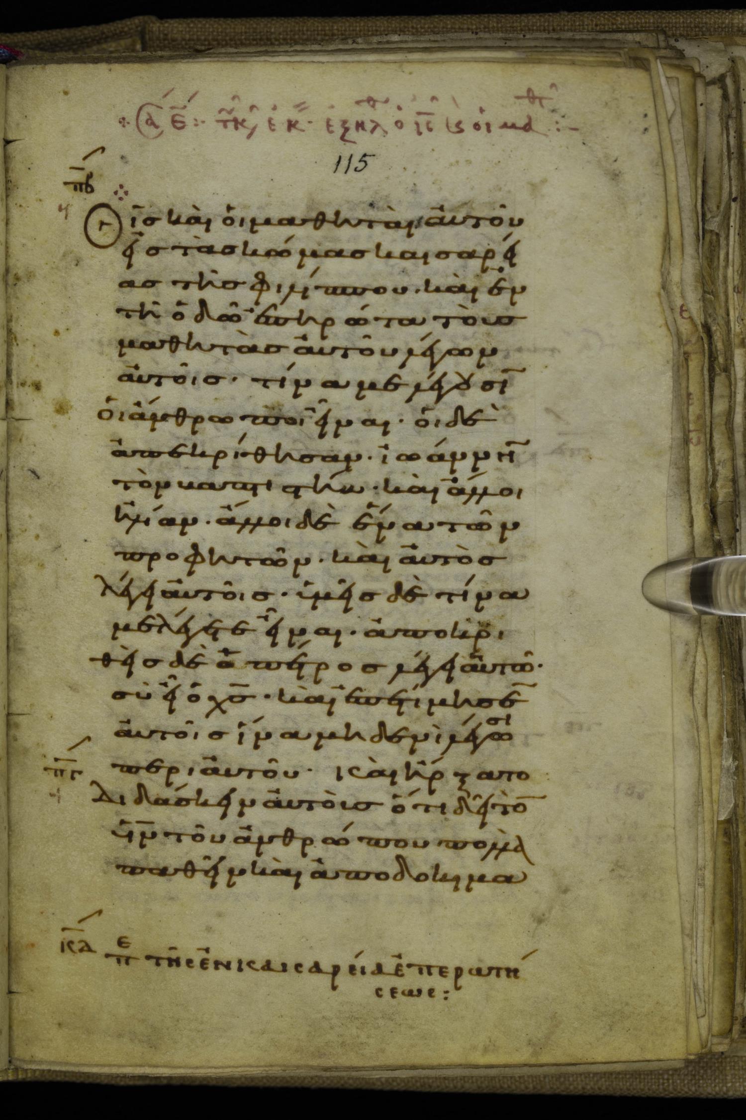 Tenth century minuscule of the Gospels on parchment; 220 leaves, 1 column, 20-21 lines per column. Images were taken at the National Library of Greece in Athens.