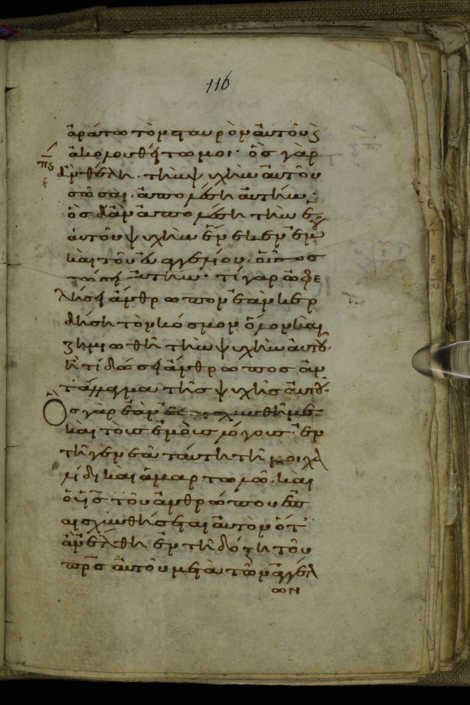 Tenth century minuscule of the Gospels on parchment; 220 leaves, 1 column, 20-21 lines per column. Images were taken at the National Library of Greece in Athens.