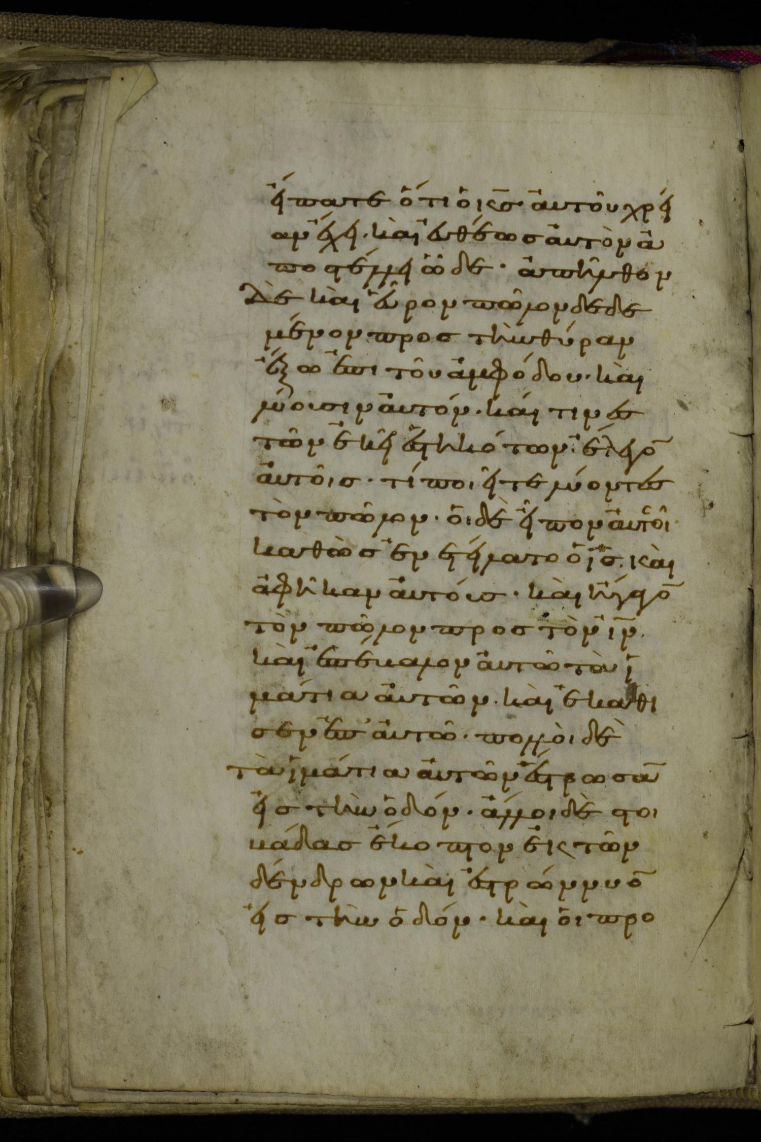 Tenth century minuscule of the Gospels on parchment; 220 leaves, 1 column, 20-21 lines per column. Images were taken at the National Library of Greece in Athens.